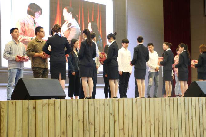 本次大会共三轮颁奖,每个颁奖环节前都穿插了一个精彩的节目,表彰结束后紧接着就是新团员入团宣誓仪式。颁奖依次分别为:为学校优秀团员、优秀团干代表颁奖;为学校青年岗位能手颁奖;为先进班集体团支部标兵颁奖。节目分别依次为:信息工程学院的开场舞《茉莉花开》;大学生艺术团的歌曲《我们的明天》;艺术学院的舞蹈《逆风飞翔》;湖之韵朗诵艺术团的诗朗诵《加油!新青年》。