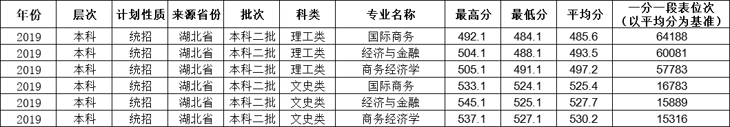 湖北省2019年本科第一批录取控制分数线为文史类542分,理工类505分。