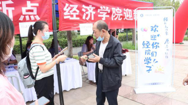 我院党总支书记王忠宝在学院迎新处问候来报到的新生,对刚刚步入大学的“后浪”们表示深切的关怀。