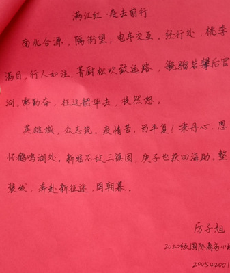 大赛分为初赛和决赛两部分,来自我院不同年级和专业的26名选手成功入围决赛。经过学工与团委办公室全体老师的评审,产生了最终的获奖名单:来自20级国际商务一班的厉子旭,凭借作品《疫去前行》荣获一等奖。20级国际商务一班张志强、19级国际商务二班赵子萱荣获二等奖,19级经济与金融一班王沙沙、19级国际商务一班唐井悦和20级商务经济学一班李国骏荣获三等奖。
