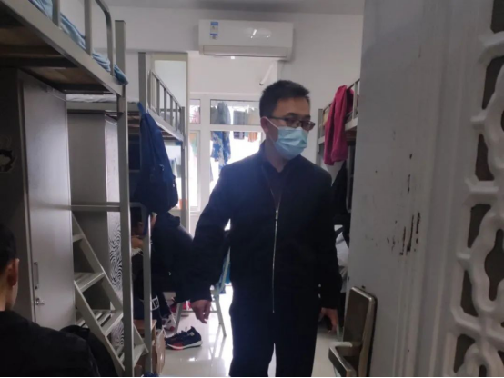 在深入学生宿舍过程中,张兵副书记与刚刚入住宿舍的大一新生进行了亲切地交流,对新生的学习、生活等方面进行了关注与了解,并提醒学生在疫情期间要注意个人卫生,勤通风,养成良好的生活习惯。