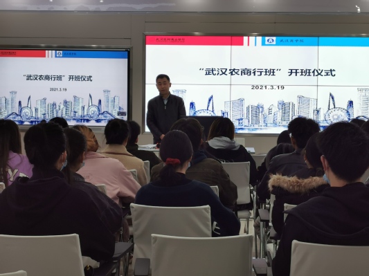 319日下午,我院首届“武汉农商行班”在北五教学楼208举行开班仪式。437必赢会员中心院长陈文武、武汉农村商业银行总行人力资源部程丽丽、柏秀魏出席活动。