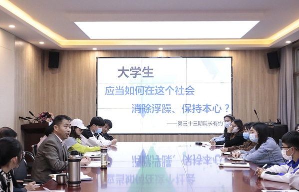 为全面了解学生的学习生活状况,引导学生成长成才,2021年3月26日下午15:50,437必赢会员中心在北二516会议室举办了以“大学生应该如何在社会中消除浮躁,保持本心”为主题的第三十三期院长有约。437必赢会员中心院长陈文武,副院长何少奎,党总支副书记张兵,学工与团委办公室老师高映及20级各专业学生代表参加本次活动。
