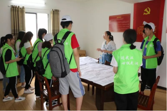 71日上午八点半,“新青年下乡”服务队从学校集合出发,前往目的地蔡甸区成功管委会镇宁堡村。经过一个多小时的车程,队伍到达镇宁堡村,新青年们在刘静老师的带领下来到镇宁堡村村委会。下车之后,大家提前做好准备工作,和村委干部沟通,新青年小分队针对事先准备好的问题向村干部提出疑问,了解并记录该村的历史文化、人口面积等信息。