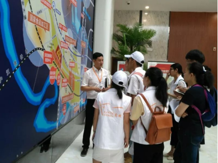 7月4日早晨经济与金融暑期实践团队在指导老师和项目负责人的带领下从学校出发前往了自贸城,到达了目的地后我们见到了接待我们的罗经理,稍作休息后,罗经理首先给我们参观了一楼的自贸城的全景模型,清晰明了的介绍了自贸城如今的现状和未来的整体规划展现出来,讲述了自贸城所处的地理优越性、周围配套物流系统的完善和“一带一路”的政策优势促成了它的成立和发展。