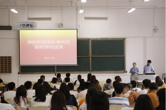 互动环节,李代代对学生们的提问细致解答,分享了自己的面试经验,提醒学生们充分准备的同时要树立自信心,勉励学生们要努力奋斗,永不言弃,并祝愿学弟学妹们前程似锦。