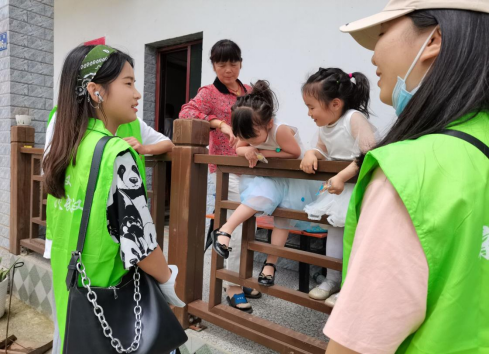 同学们按计划分为六组走访村民,了解村民家庭基本情况,参与劳动。在走访过程中,同学们发现村中有不少孤寡老人和留守儿童,同学们陪孤寡老人聊天,和小朋友们玩游戏,不仅传递了温暖,而且收获了快乐。