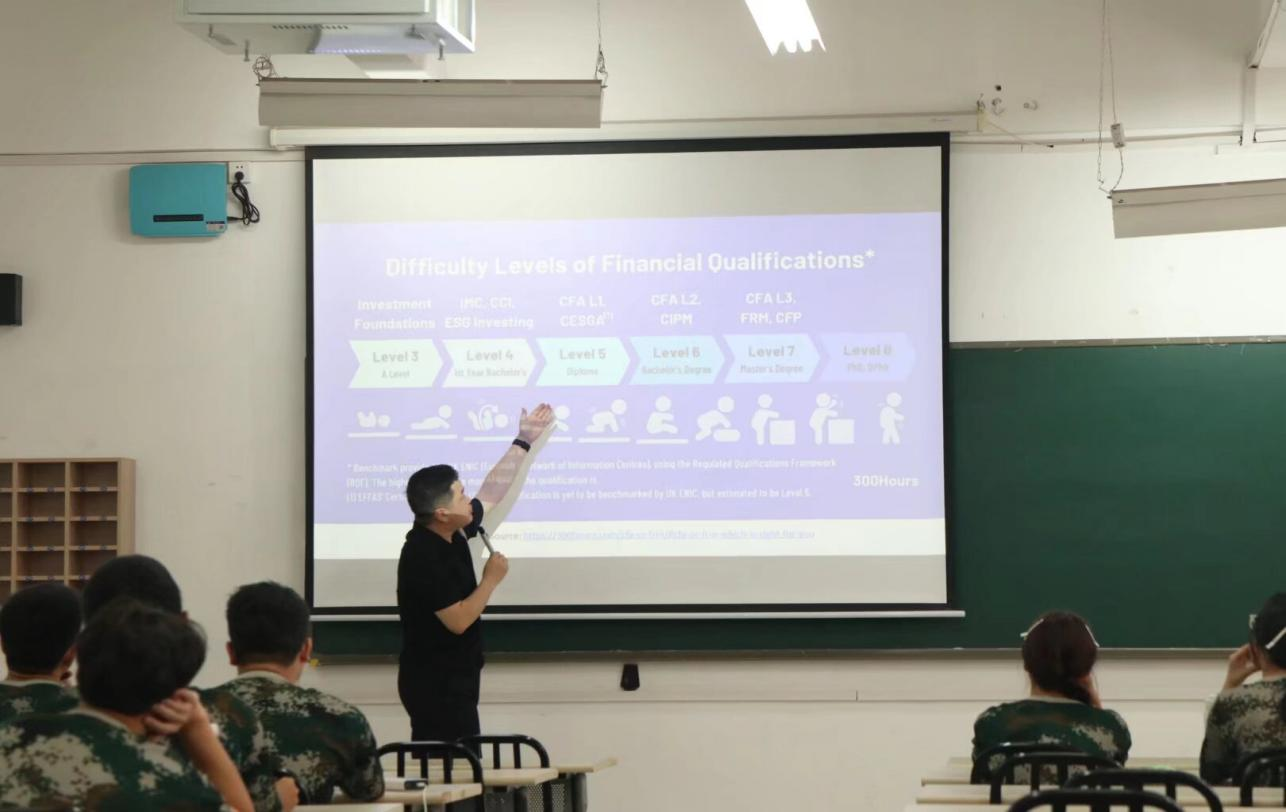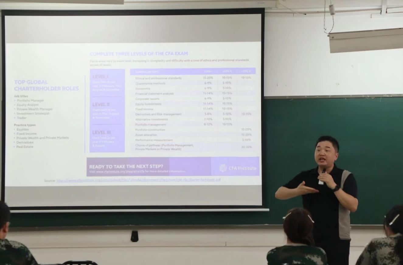 讲座中,陈教授重点讲解了金融领域核心证书与海外优质院校资源。他介绍,特许金融分析师(CFA)证书全球认可度高、含金量足,分三级全英文考试,考取后可助力拓宽职业路径与人脉;同时提及聚焦金融风险管理的FRM证书,该证书分两级考试,是风控领域的重要资质。关于英国东安格利亚大学(UEA),陈教授提到,该校国内外排名靠前且科研实力强劲,课程贴合行业需求并多获认证,商学院配备彭博终端供学习考证,社团活动丰富;此外,UEA与必赢电子游戏网站设有2+2、3+1合作项目,鼓励新生主动了解相关机会。