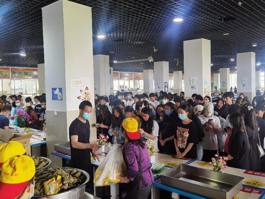 疫情期间,为庆祝端午佳节,同时响应属地过节的号召,学校准备了将三万多个粽子及七千多个鸭蛋,作为节日慰问品发给学生。6月4日上午八点半,学校在食堂设置了发放点,慰问品便按班级分配好,学院党政领导周平、张磊将慰问品陆续送至学生手中。与此同时,各学院还组织特色文化活动。