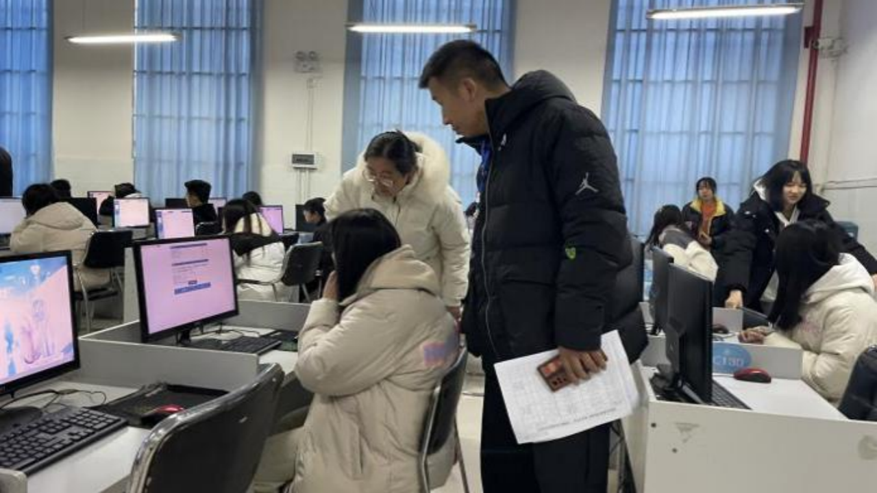 经巡考工作组巡查发现部分考场未写板书、未组织单人单座;个别监考教师未佩戴工作证、部分学生在机考时对电脑操作不熟练等问题。巡考工作组发现问题后指导监考教师现场解决。