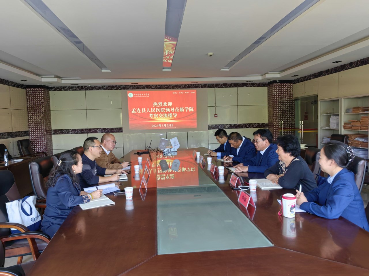 2024年3月25日,孟连县人民医院院长李建斌,常务副院长邹岷,人力资源科主任叶翁一行到beat365平台官方网站进行考察交流学习。参加此次交流会的有beat365平台官方网站副院长张尤松,护理学院院长蒋淑昆,临床学院副院长唐敏,教务处处长孟州令,实习管理处副处长颜慧林。