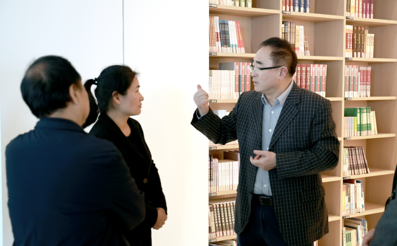 检查组专家在图书馆考察