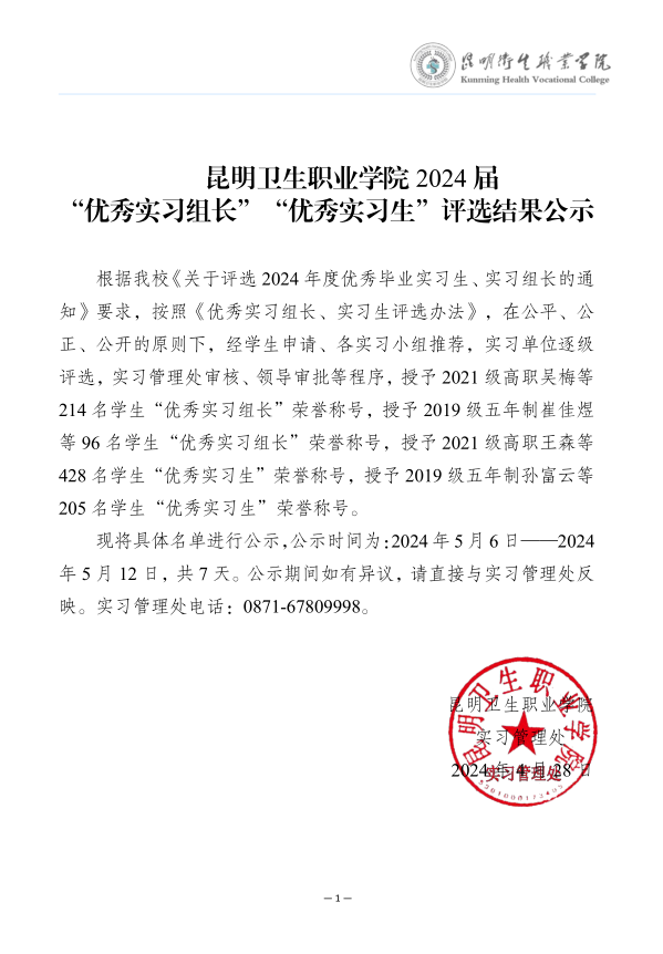 beat365平台官方网站2024届“优秀实习组长”“优秀实习生”评选结果公示