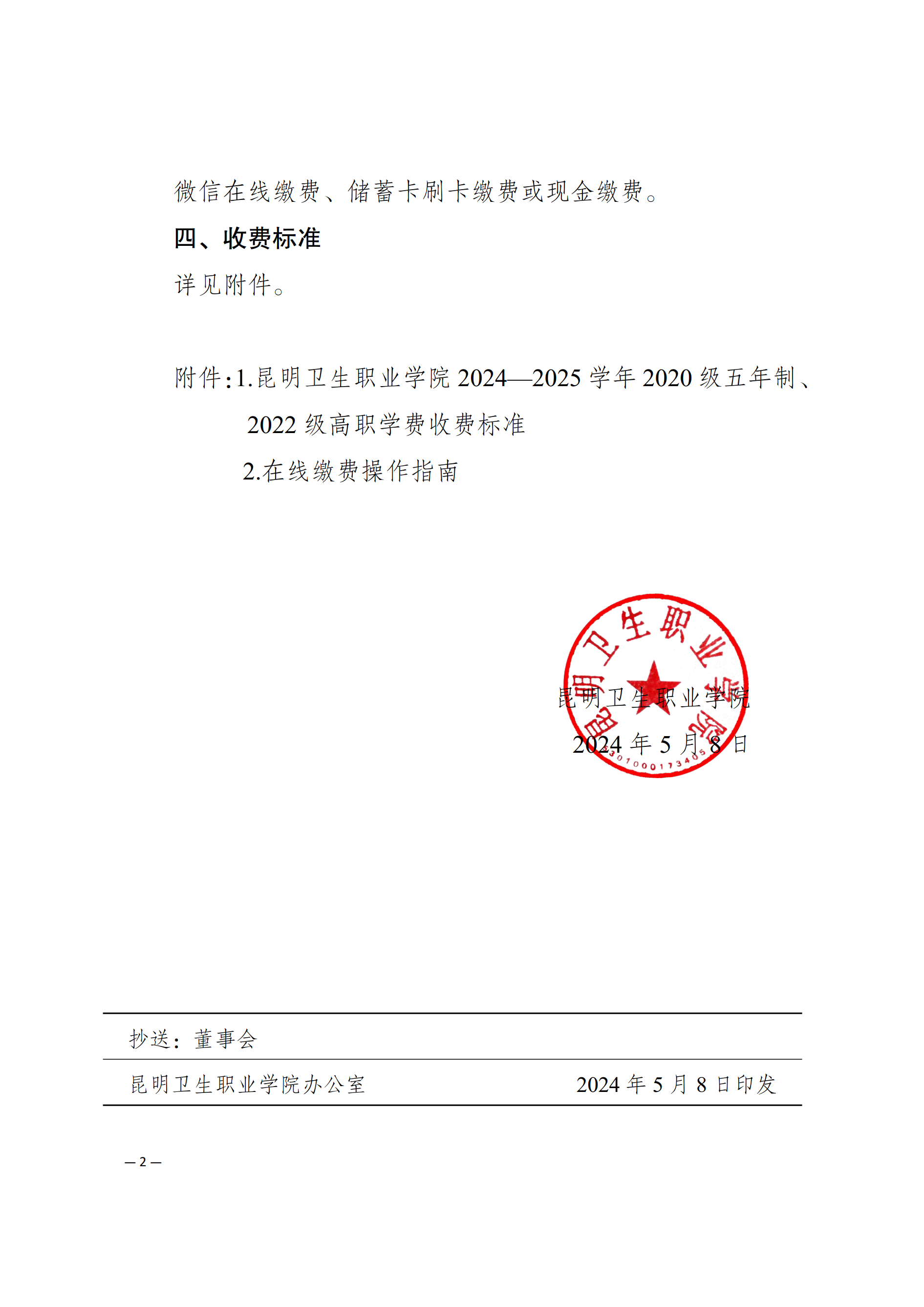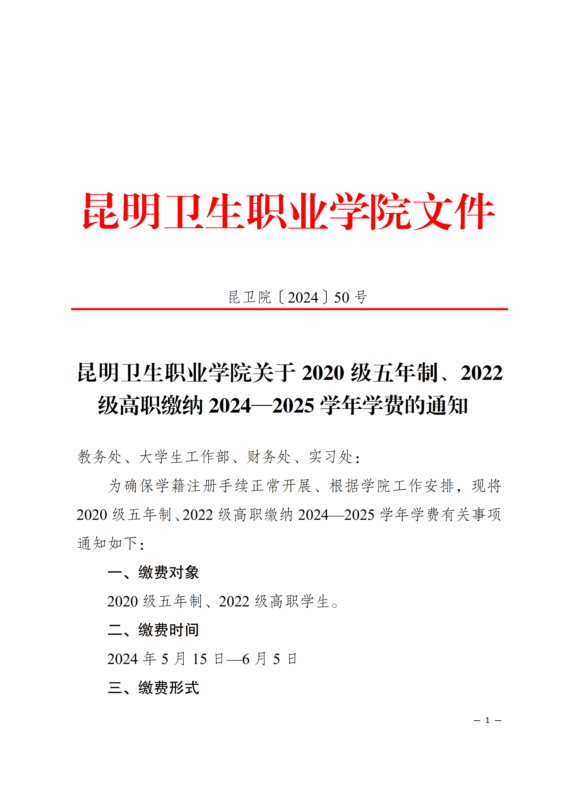 beat365平台官方网站关于 2020 级五年制、2022 级高职缴纳 2024—2025 学年学费的通知