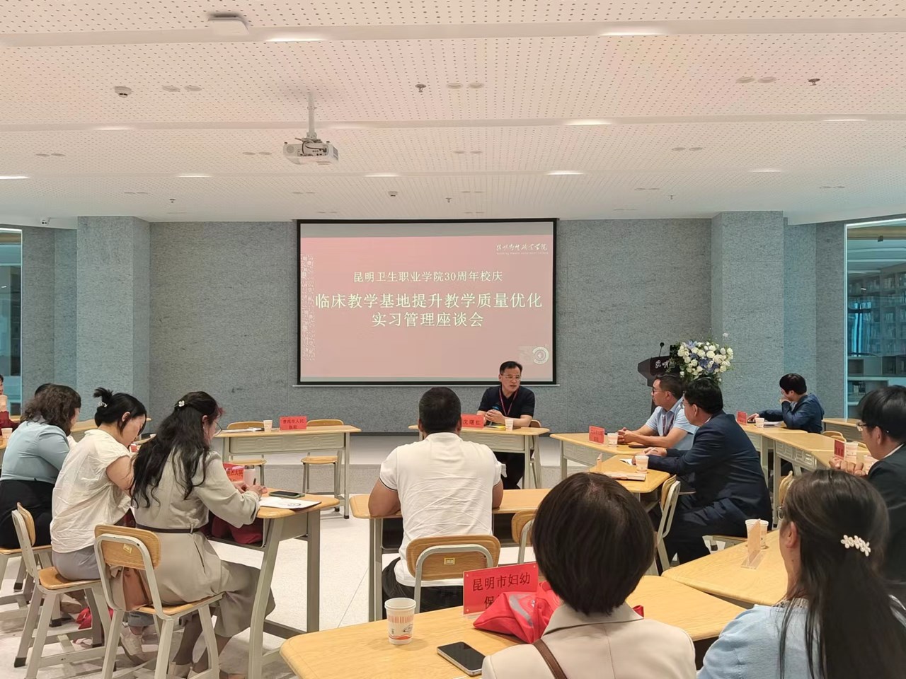 接着,各非直属附属医院、教学医院进行了面对面的交流,开远市中医医院、官渡区人民医院、蒙自市人民医院、石屏县人民医院、普洱市人民医院、姚安县中医医院、玉溪市中山医院、景洪市第一人民医院,从实习生岗前培训、科室轮转,教学讲堂、病例讨论、教学查房等教学活动的开展,师资队伍的建设,实习生管理中的奖励、惩罚机制,以及实习生医患沟通培训,实习生心理问题疏导,实习生安全教育等方面,依次分享了各临床教学基地的实习带教经验、实习生管理方法。