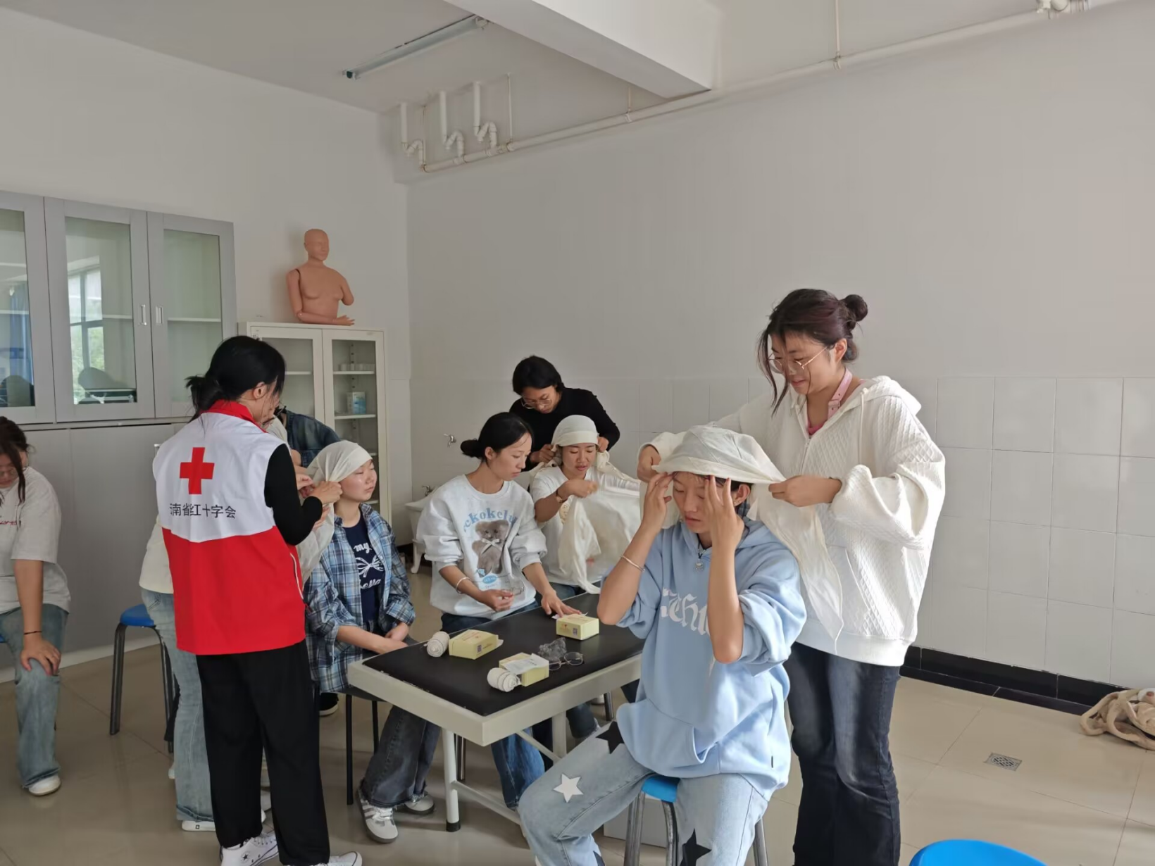 上午在beat365平台官方网站学术报告厅进行理论知识的讲解,内容为红十字会运动的知识与简介,应急救护知识的概况,心肺复苏与AED的使用以及创伤救护技术知识等。下午在临床学院和护理学院实训室进行实践操作,培训中每个实训室的讲师进行了现场模拟操作以及学生分组进行实践操作等环节,充分利用实训室的教学模型,医用物品。通过理论与实践相结合,以轻松活泼、通俗易懂的方式,让现场的学生们掌握了各项专业急救知识。培训中所有受训人员都积极参与到培训内容中,现场氛围热烈,洋溢着青春与活力。