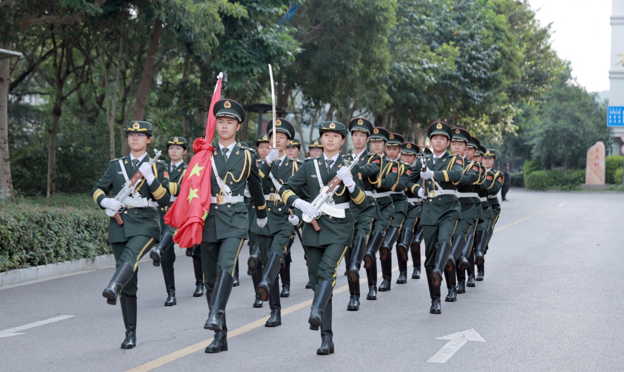 迈着整齐有力的步伐,校国旗护卫队护卫着国旗走向升旗台。在雄壮激昂的国歌声中,鲜艳的五星红旗缓缓升起。全体人员庄严肃立,向国旗行注目礼,并齐唱国歌,以此向伟大祖国致以最崇高的敬意和最美好的祝福。