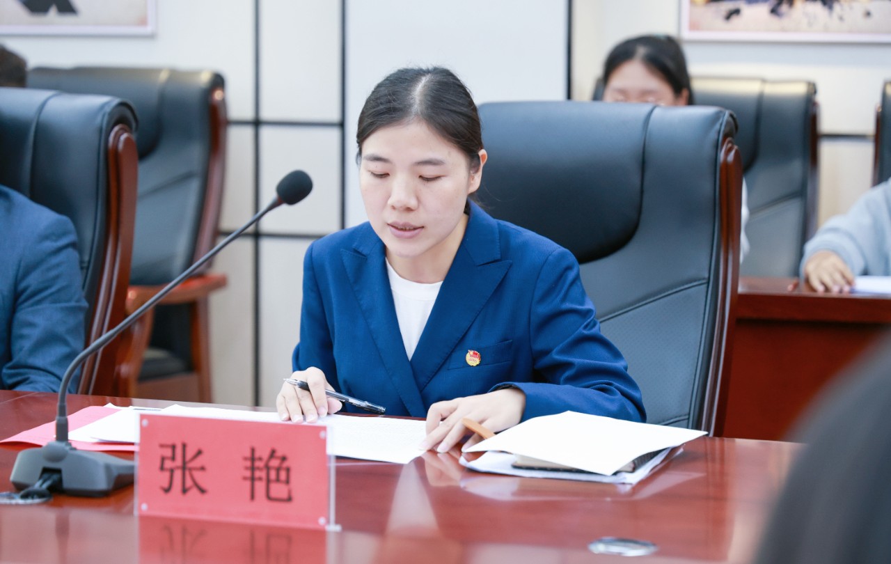 学院党委委员、团委书记张艳同志结合《中国共产主义青年团普通高等学校基层组织工作条例》和《关于共建高校“大思政”体系推动高校共青团工作高质量发展》两份文件的学习落实情况,从学院共青团工作的现状、亮点和存在的不足进行了汇报。