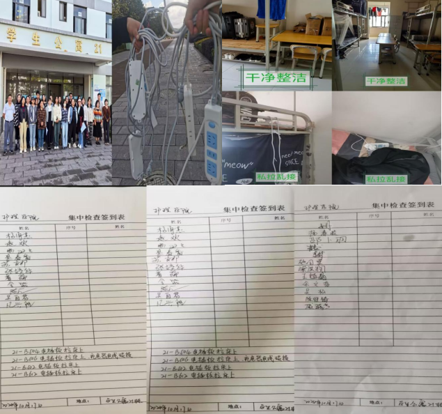 护理学院2024年10月17组织全体辅导员对男生公寓21栋A区、B区、C区进行安全检查,检查重点以宿舍大功率电器、管制刀具、卫生、消防设施、线路及电器设备、落实防踩踏、防汛、防雷电、隐患排查、宿舍门贴、驻校警官电话、违规物品及物品有序摆放等问题为重点,全面开展安全隐患检查活动。严格按照“全覆盖、零容忍、重实效”的总要求,认真开展安全检查,全面检查宿舍楼、水、电、大功率电器管、制刀具等,建立检查记录和隐患整改台账。学生宿舍、消防安全重点部位的插座、线路、配电箱等设备设施的巡检,加强用电和收缴违规物品管理,及时消除安全隐患。对于收缴违规的大功率电器、管制刀具、私拉乱接插板,台账记录交由学管办存档,备上级部门检查。