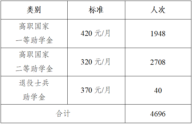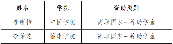 高职国家助学金:经二级学院核实受助学生名单,结合全国学生资助系统更新的重点保障人群数据,经学生申请,二级学院审核,学籍科、资助中心核实确认,现共计2名受助学生因学籍变动不再符合高职国家助学金受助条件。现将受助资格收回,重新分配至其他2名符合资助条件且家庭经济困难的学生。