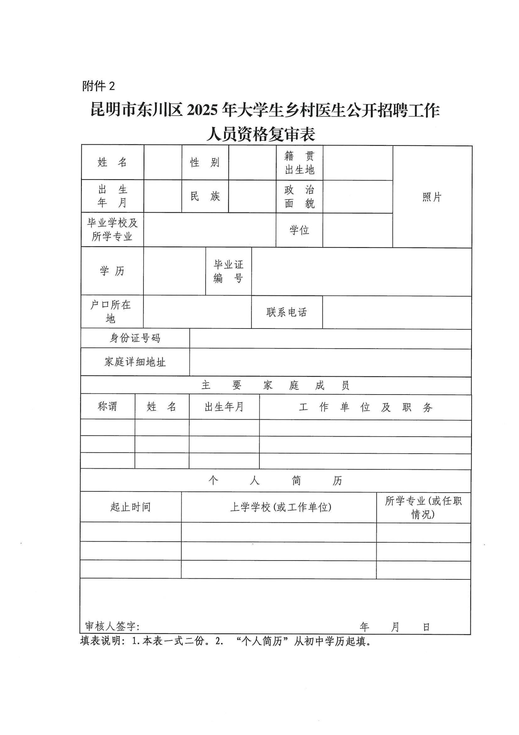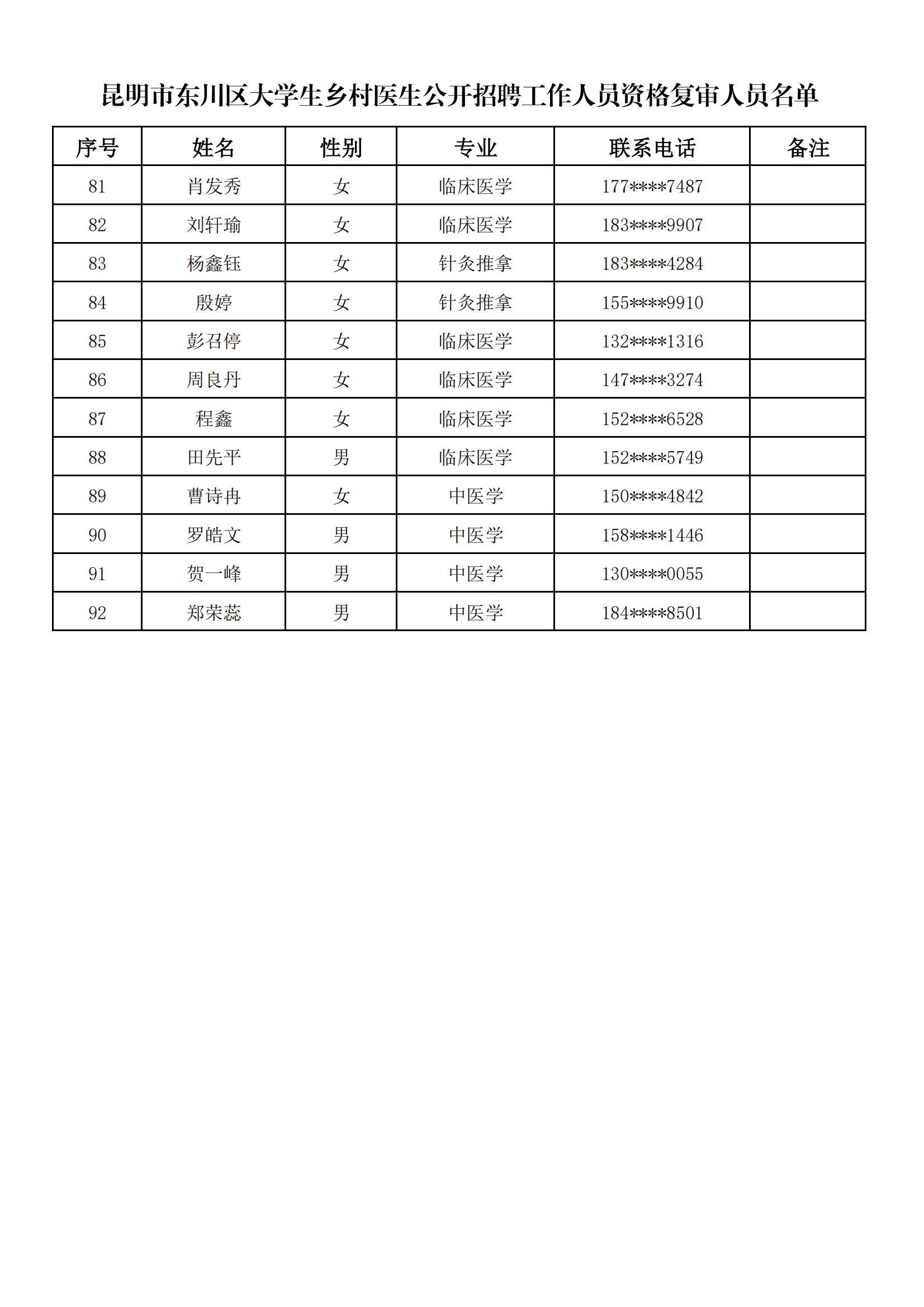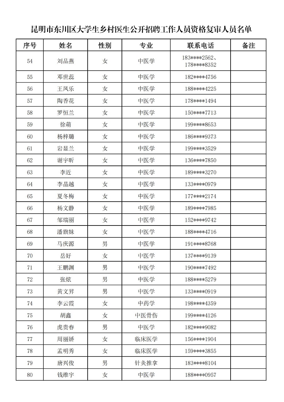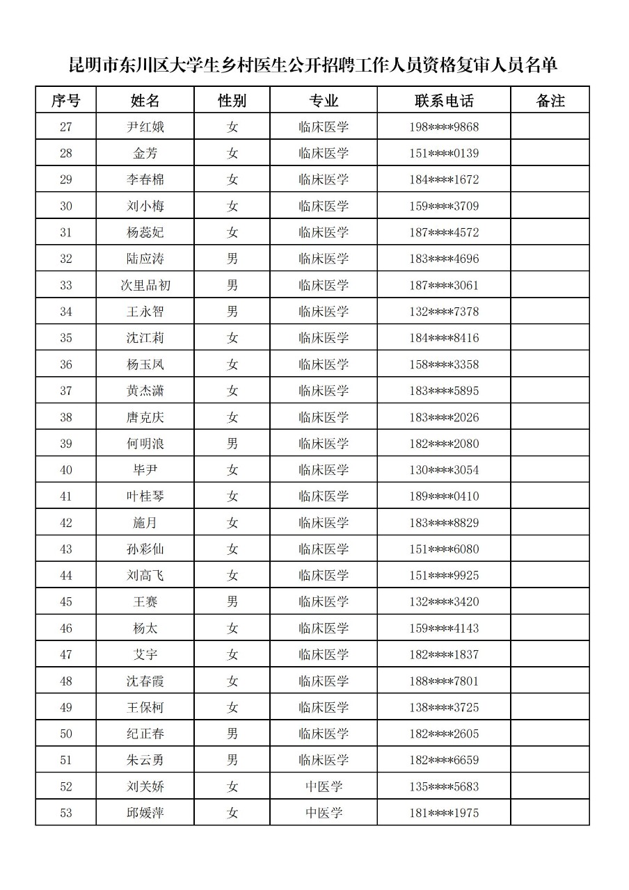 昆明市东川区2025年大学生乡村医生公开招聘工作人员资格复审公告