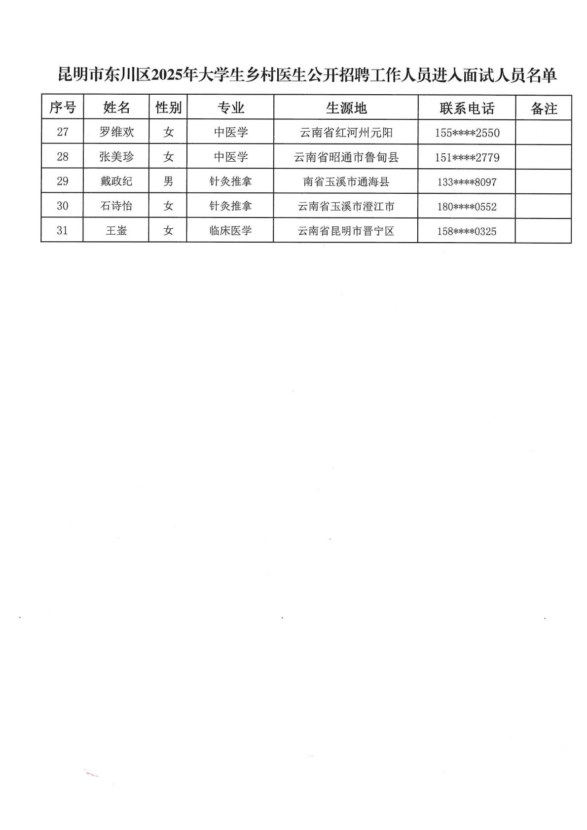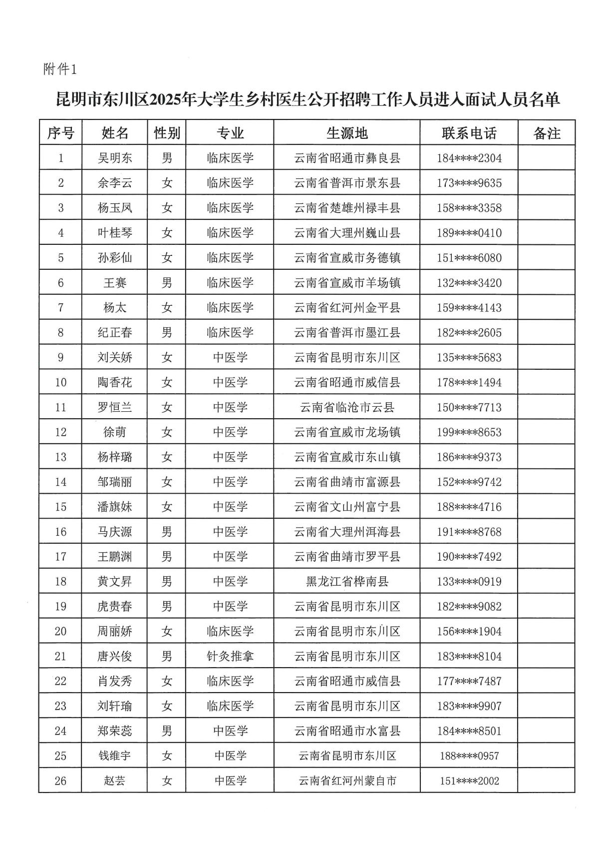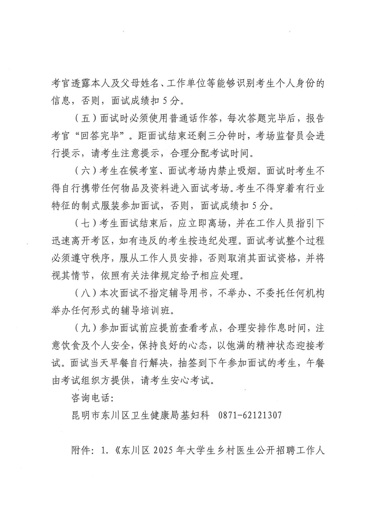 昆明市东川区2025年大学生乡村医生公开招聘工作人员面试公告