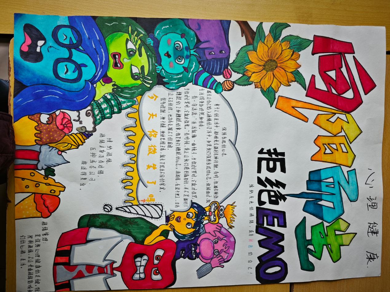 自比赛启动以来,同学们积极参与,并在创作过程中主动学习情绪调节、压力管理等知识,将“接纳自我”“积极沟通”等理念融入画笔与文字:有的用色彩对比展现“压力与成长”的辩证关系,有的以漫画形式解读人际交往中的心理技巧,字里行间流露着对心理健康的深刻思考。