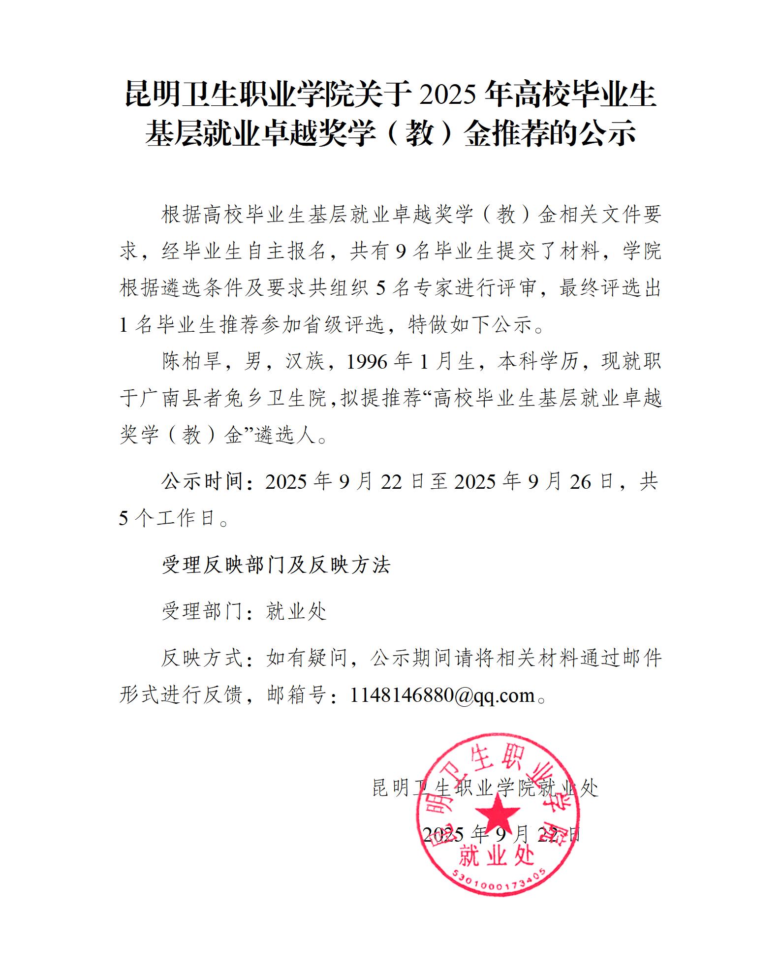 beat365平台官方网站关于2025年高校毕业生基层就业卓越奖学(教)金推荐的公示