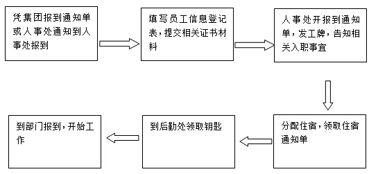 1、由集团安排的新员工凭集团人力资源部开据的报到通知单按时到学院人事处报到。若由学院自行招聘的员工则直接到学院人事处报到。