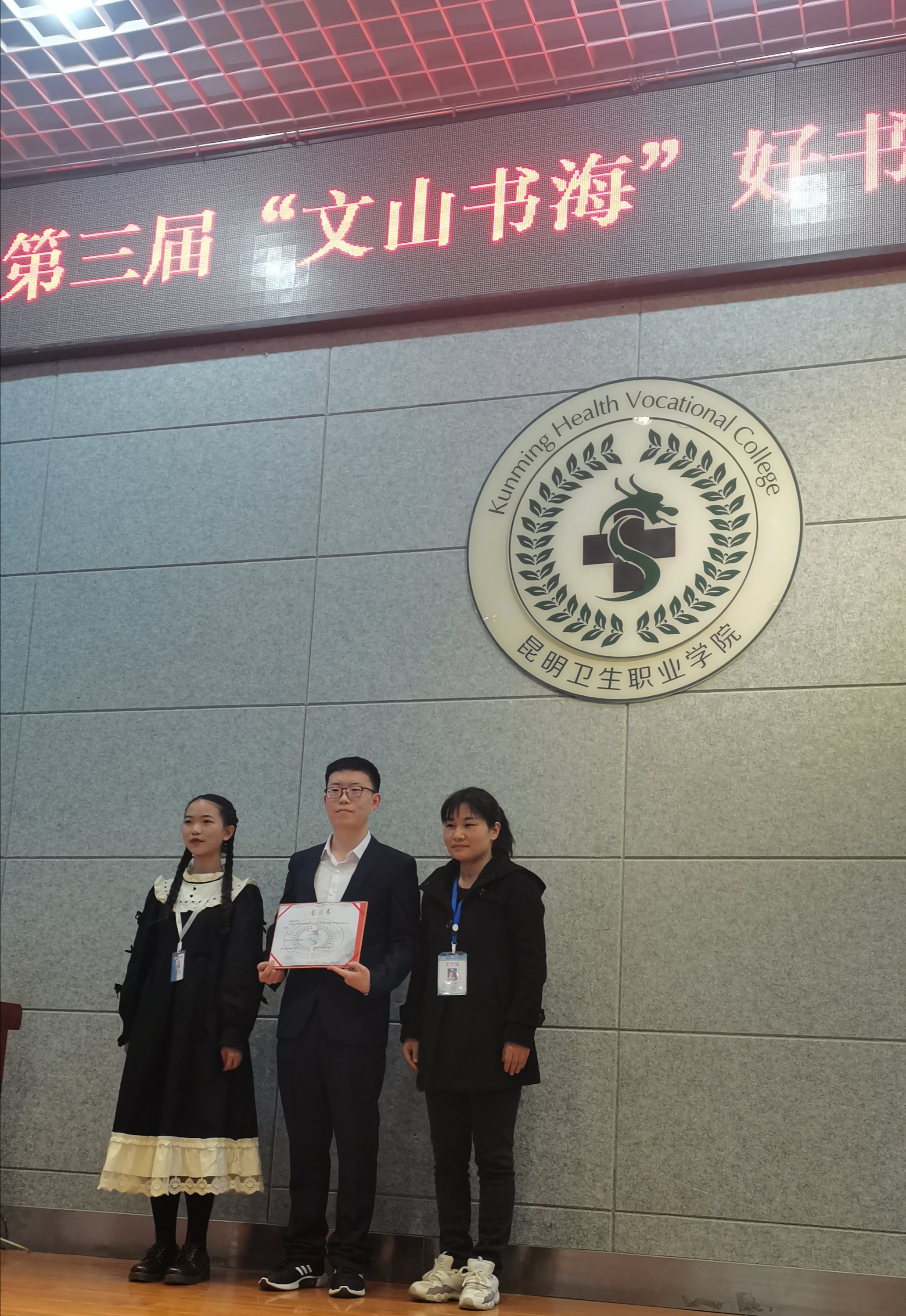 最后,由主持人宣布比赛得分及获奖名单,获奖的同学上台领奖,由高丽老师为其颁发证书,读者协会会长为本次活动做出总结,于此同时,2020年第三届“文山书海”好书推荐决赛圆满落幕!