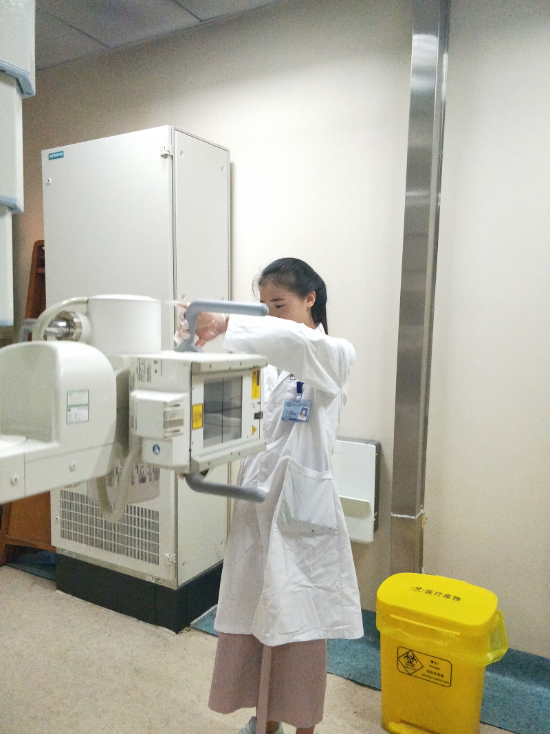 刚进医院我被分到了CT室,在这里为期两个月,时间虽然短暂,但我还是学到了很多东西,每一个带我的老师都会很认真的跟我讲解机器的操作,以及操作过程中的各种问题。病人少的时候教我如何操作机器,教会了我以后老师就会放手让我一个人操作,他在旁边看着,就这样一直下去,短短两个月的时间我熟练了操作,希望以后在DR能学到更多的东西。实习中,我也还有很多不足的地方,比如体位的不熟悉,跟病人及病人家属的沟通等这些问题,我都会努力的去克服。
