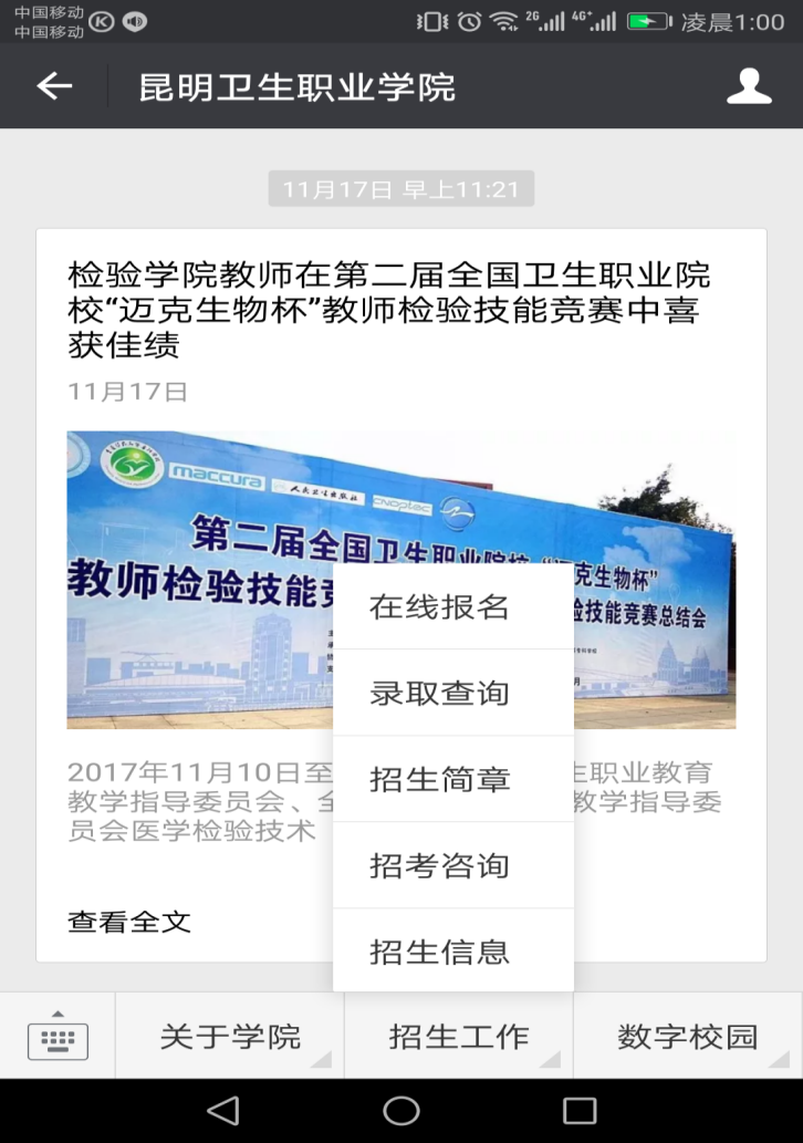 图2:学院微信公众订阅号招生专栏