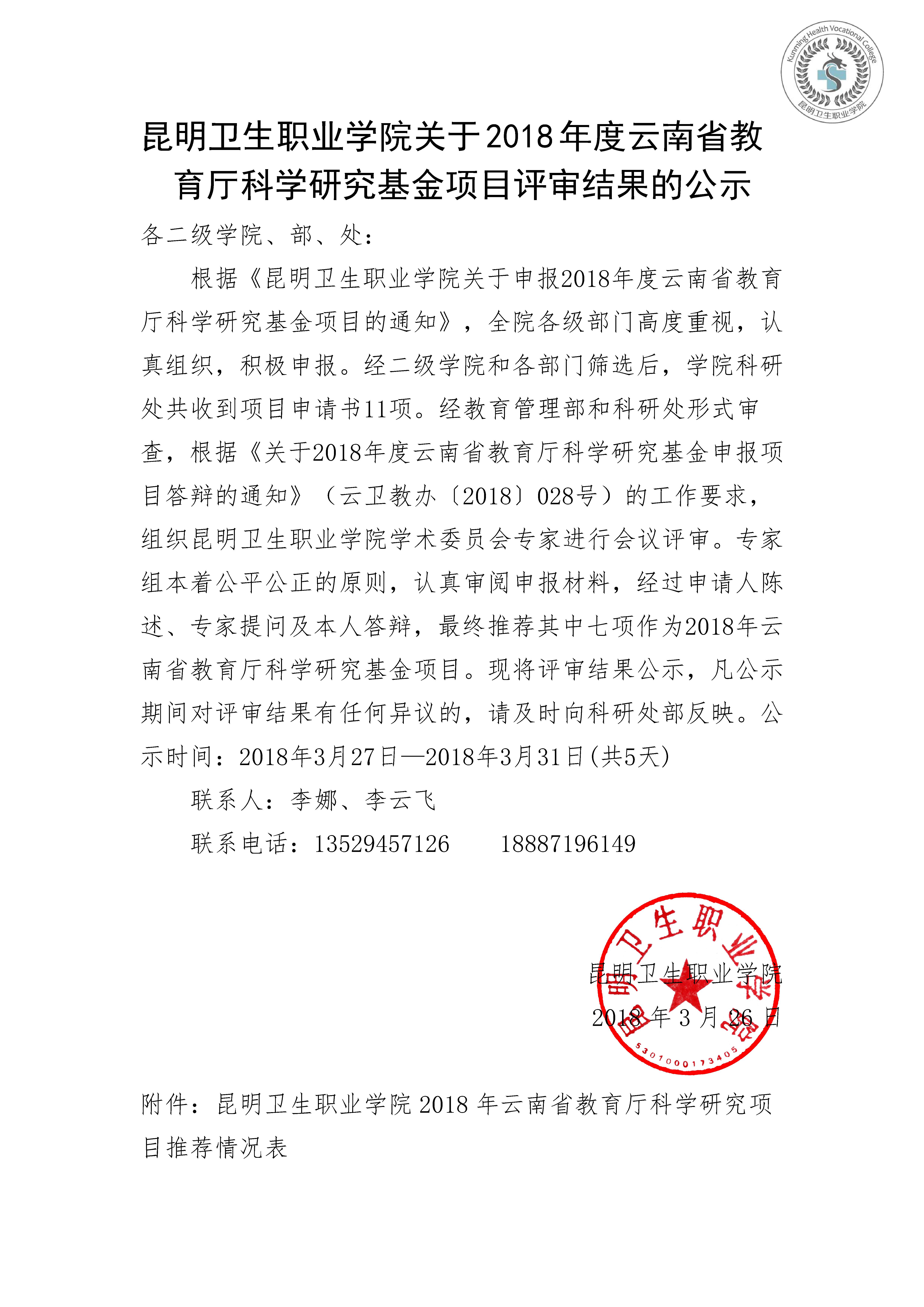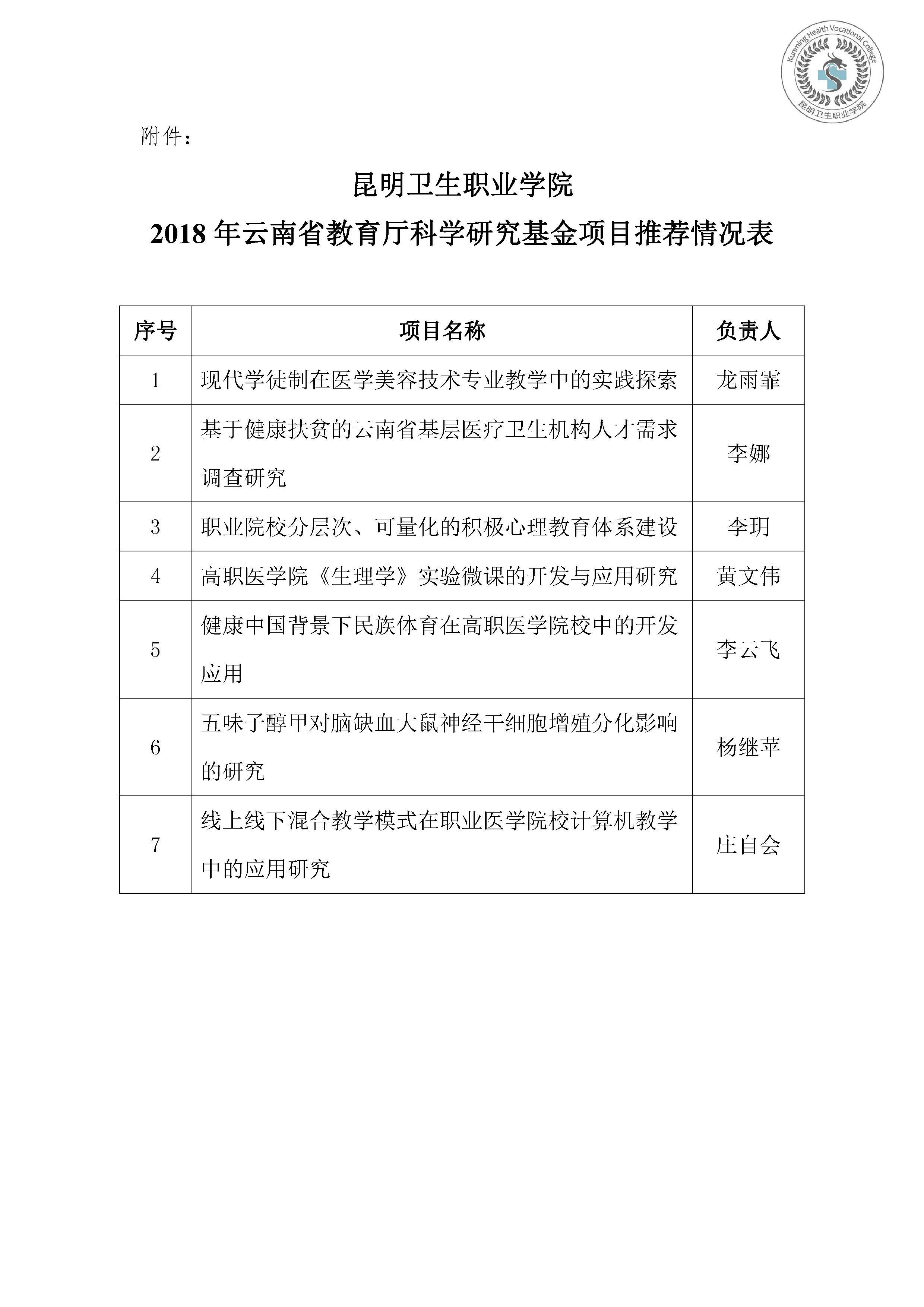 beat365平台官方网站关于2018年度云南省教 育厅科学研究基金项目评审结果的公示