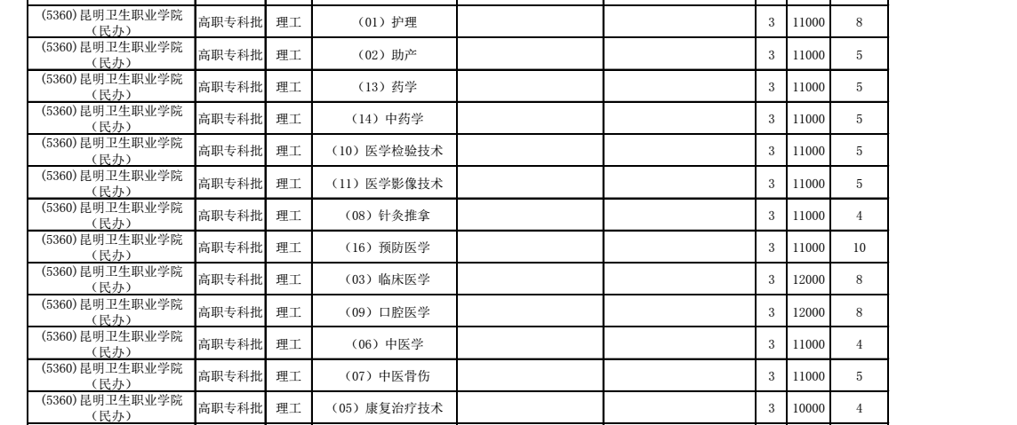 (一)文、理科高职专科批次各高校