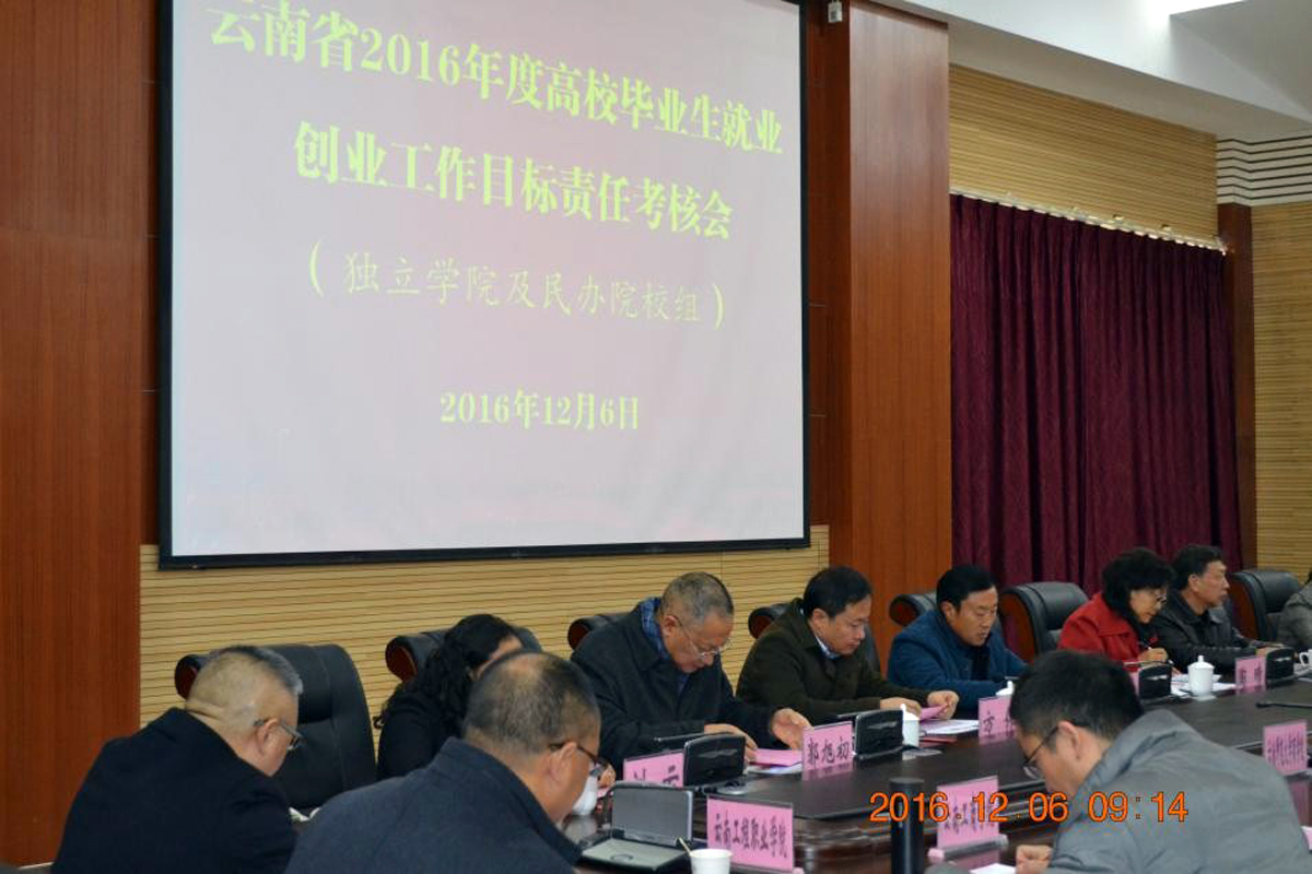 12月6日,beat365由实习就业部部长张尤松,副部长颜慧林带队,一行四人在云南经济管理学院安宁校区,参加了“云南省2016年度高校毕业生就业创业工作目标责任考核会”。省内各独立学院及民办院校分管领导,对本年度就业创业工作依次进行了汇报。