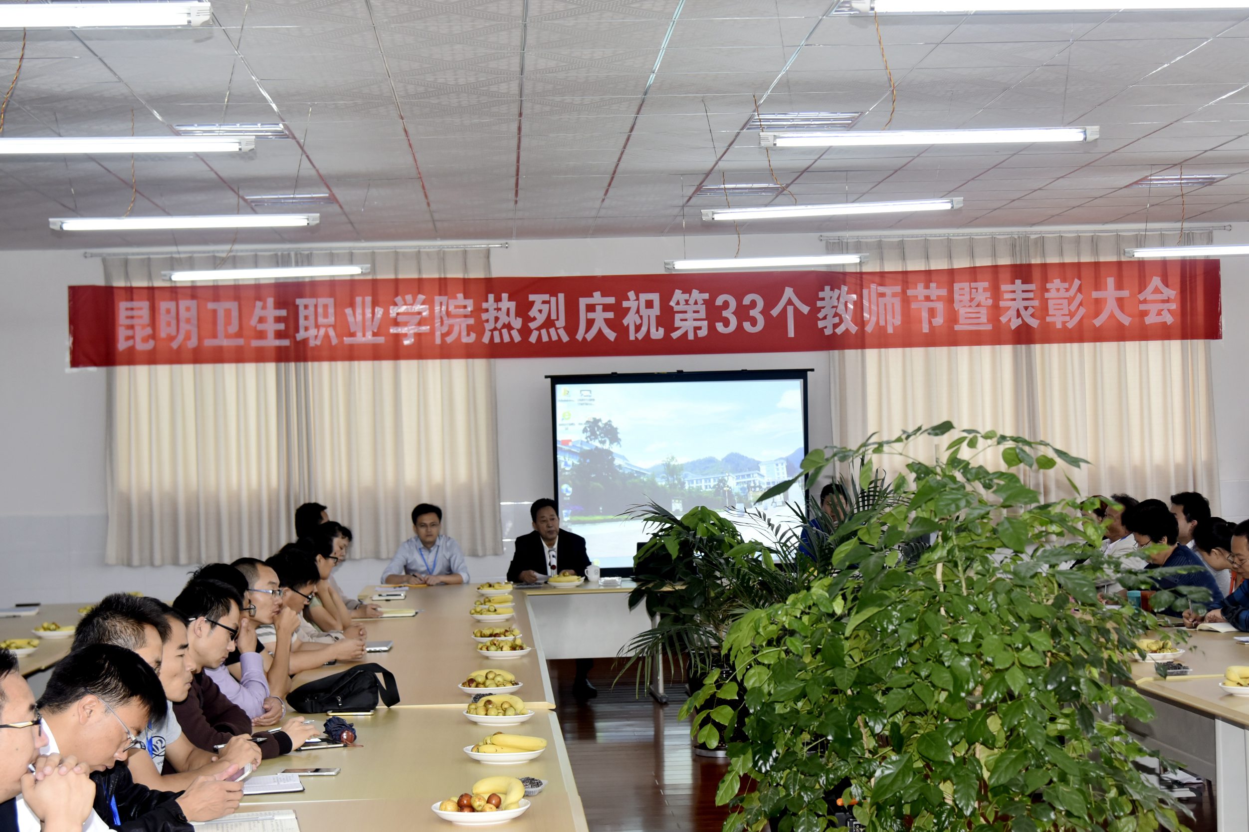 党委书记、院长龙正昌代表学院向受到表彰的优秀教师和教育工作者表示热烈的祝贺,向学院全体教师和教育工作者致以诚挚的问候和节日的祝福。他指出,学院自办学以来走过了23个春秋,奠定了一些基础,培养了60000多名医务工作者,他们的足迹遍布云南的山山水水。当前,国家不断出台鼓励和支持民办院校、职业院校发展的政策,我们要珍惜机遇,乘势而上,坚持特色发展、内涵发展和创新发展,将昆卫学院打造成省内优质、国内知名的特色民办职业院校。