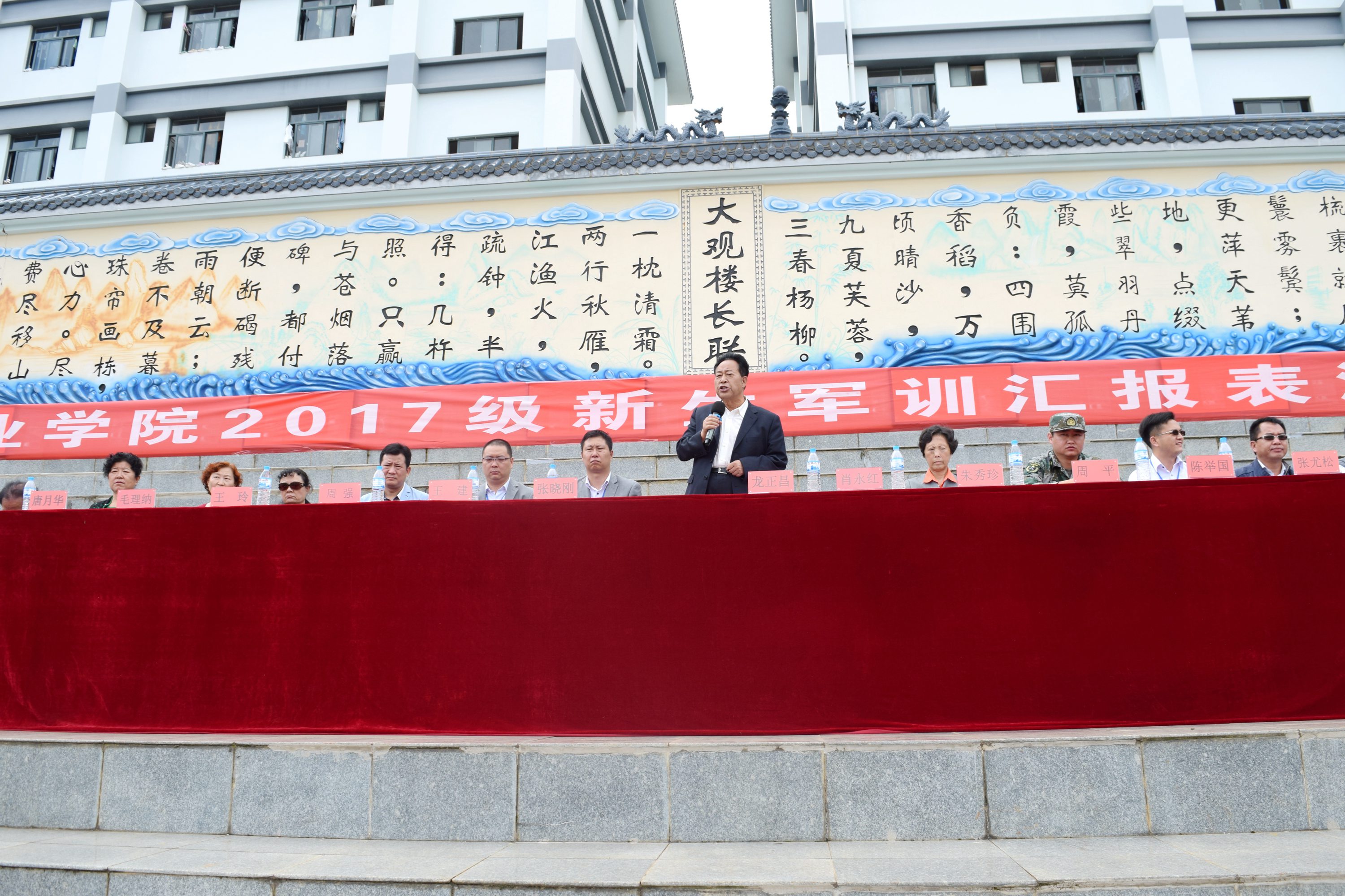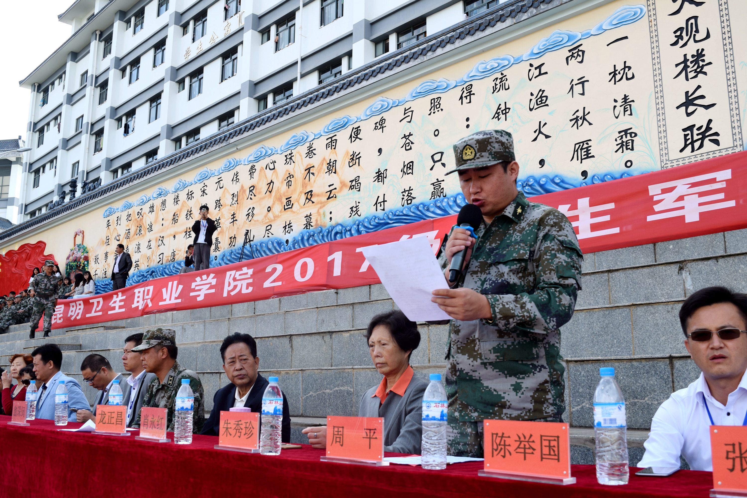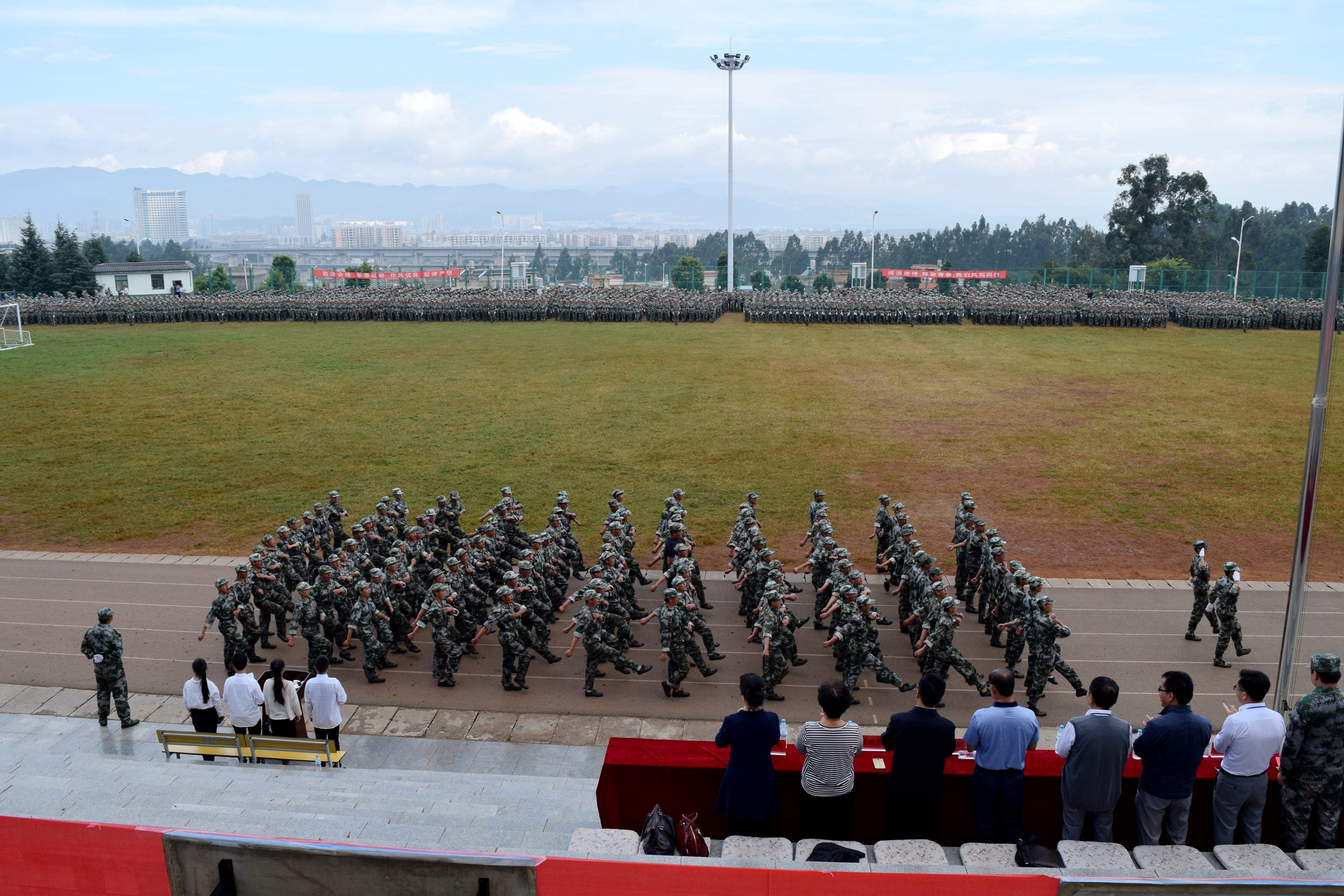 9月4日,beat365平台官方网站2017级新生军训汇报表演暨开学典礼在足球场隆重举行。出席的领导有云南昆卫教育集团理事长、beat365平台官方网站党委书记、院长龙正昌,云南昆卫教育集团副理事长朱秀珍女士,承训单位总教官肖永红中校,集团实习就业处、招生外联部等部门负责人,学院党政领导。新生班主任和部分教师前来观礼。