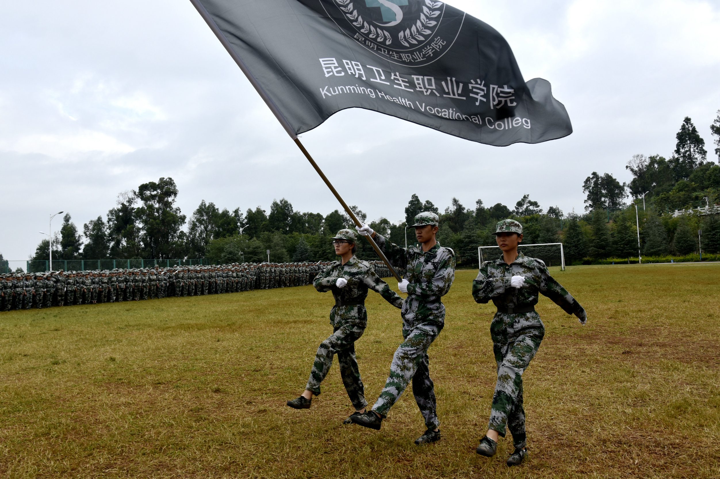 近500名新生身穿迷彩服、手戴白手套,随着音乐声变换出不同的方阵。据了解,台上短短5分钟的表演,是新生们和教官努力训练一周的结果。花样方阵表演赢得了观礼台师生的热烈掌声。学院副院长、武装部部长周平表示,希望通过这样的汇演,增强学生的爱国、爱党、爱校意识,同时也提升学生的团结协作能力。
