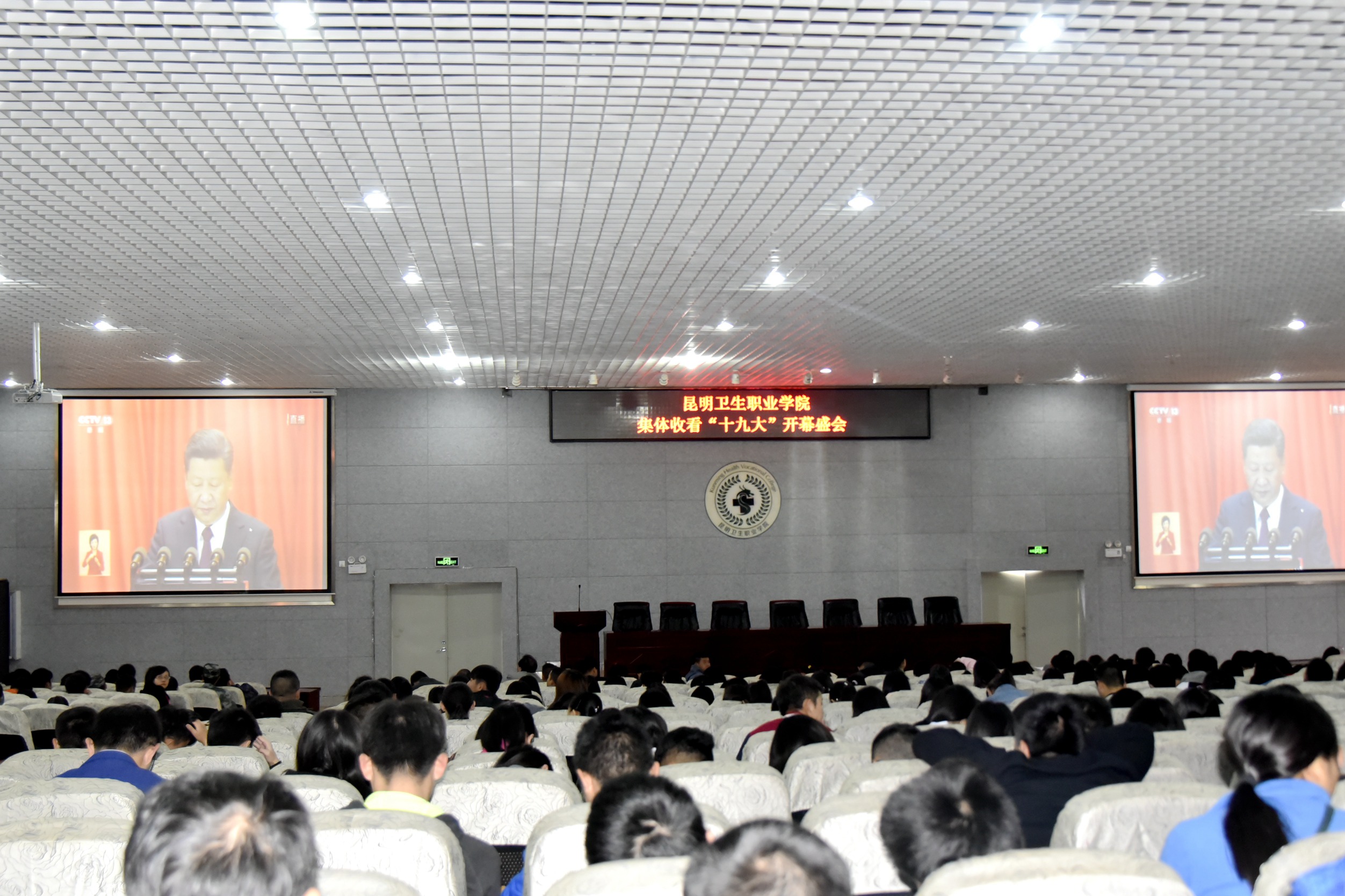 10月18日上午9时,党的十九大在京隆重开幕,beat365平台官方网站党委组织学院党政领导,各部门、二级学院干部,思政课教师等师生代表在学术报告厅集中收看了十九大开幕式盛况,共同聆听习近平总书记所作的大会报告。