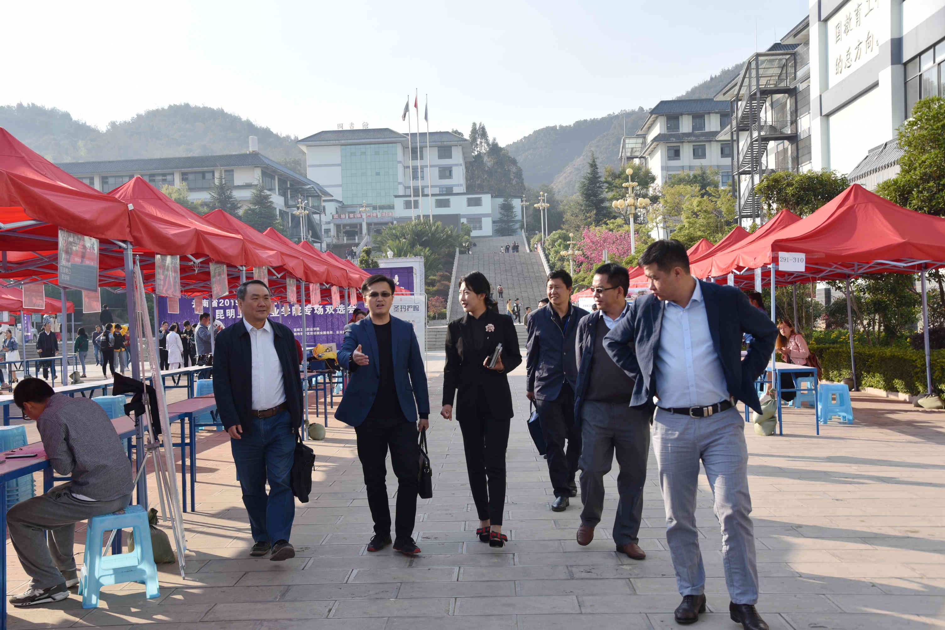 beat365院长贾勇、党委副书记张晓刚、副院长陈举国、周平、龙雨霏、张磊、张尤松一行先巡视了毕业考试考场,然后到招聘会现场看望用人单位,了解用人需求,听取用人单位对beat365人才培养、专业设置、实习实训等意见建议;并与应聘毕业生亲切交谈,了解他们的就业求职意向和应聘情况,鼓励他们以自信、务实的心态积极应聘。学院领导对双选会前期准备、会场布局、招聘服务等给予了肯定。