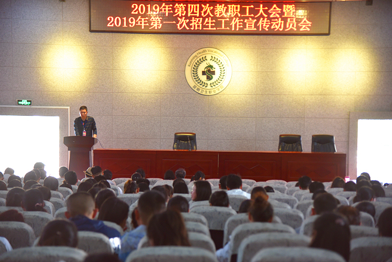 4月22日下午,学院2019年第四次教职工大会暨第一次招生工作宣传动员大会在学术报告厅召开。学院领导贾勇、张晓刚、周平、龙雨霏、张磊以及全体教职工共同参与了本次大会。会议由学院党委副书记张晓刚主持。
