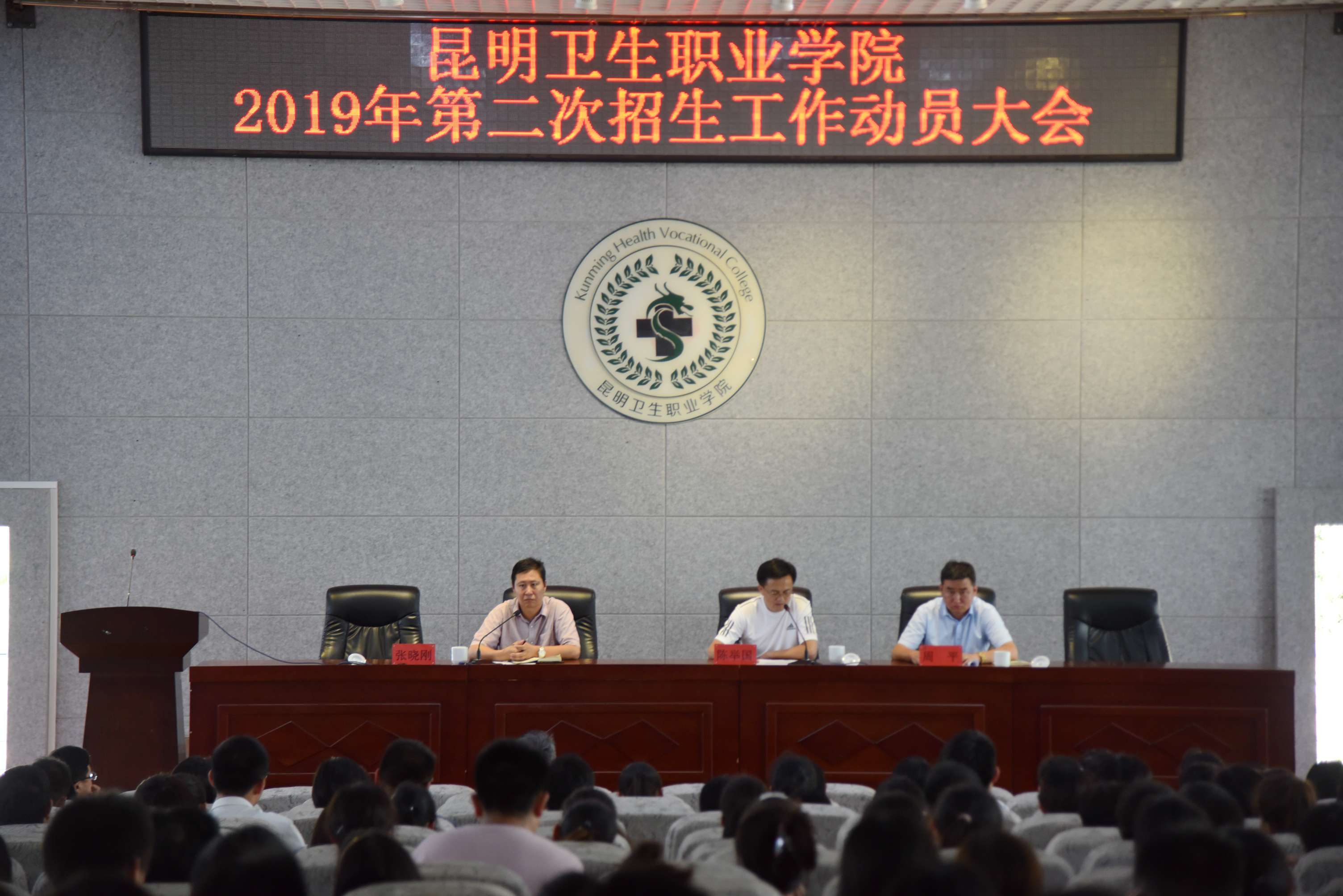 大会还邀请了2018年招生工作表现突出的部门代表继续教育学院院长官文焕,表现突出的教职工代表刘晓阳作交流发言,分享招生工作先进经验,教育引导广大教职工充分发挥爱校爱生,以校为家,积极贡献的精神。张晓刚副书记介绍了学院组织开展的“醉美古滇▪昆卫绽放”新媒体创意宣传大赛的相关内容,要求广大教职工要积极行动起来,人人参与校园文化建设,人人参与招生宣传工作,同心协力,为学院发展做出积极贡献。