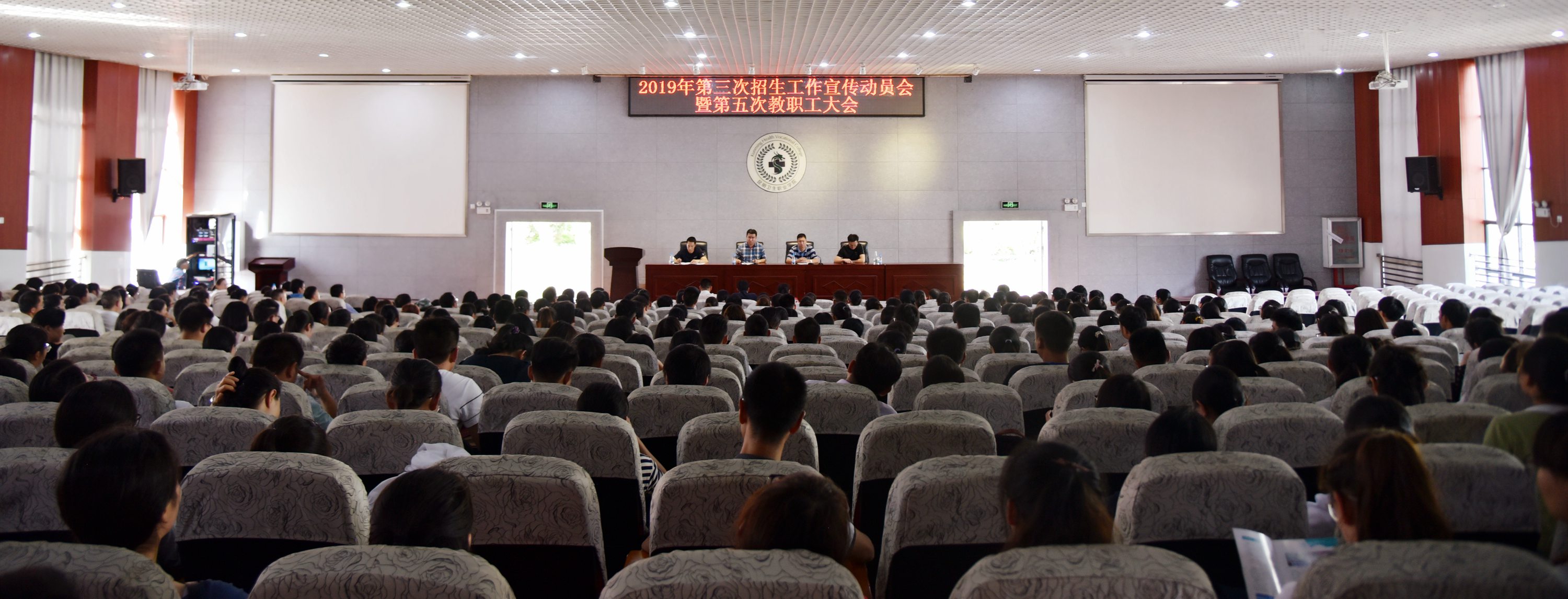 6月19日下午,beat365在综合楼学术报告厅召开2019年第三次招生宣传工作动员会暨第五次教职工大会。学院党委副书记张晓刚,党委委员、副院长周平,副院长陈举国、张磊出席大会,全体教职工参会,会议由周平副院长主持。