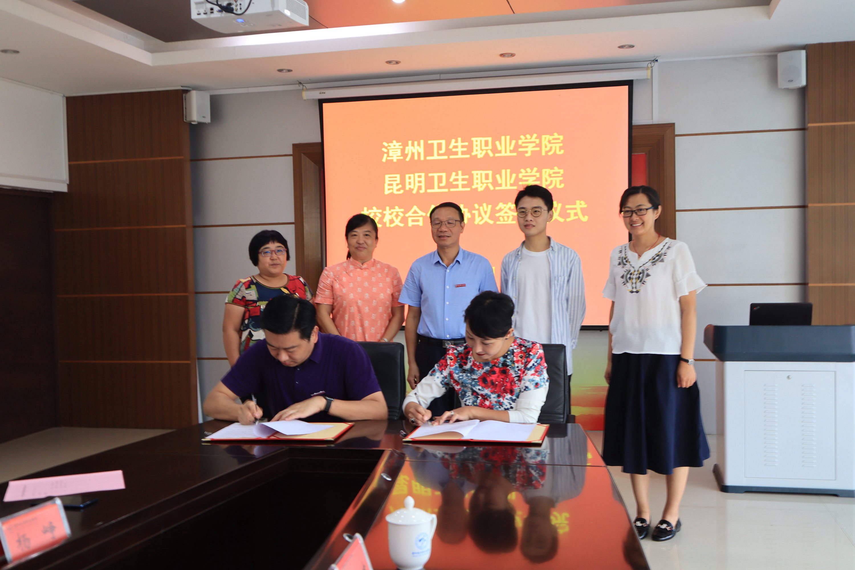为进一步促进校校间的交流与合作,实现资源共建共享,共同提高人才培养质量,6月18日,beat365由副院长龙雨霏带队,教务处处长李玉晶、教务处处长助理徐伟杰一行3人,本着学习、借鉴、交流、加强沟通与增进友谊的态度,到漳州卫生职业学院考察交流,并签订校校合作协议。期间受到院长沈国星、副院长房立平及相关部门负责人的热情接待。