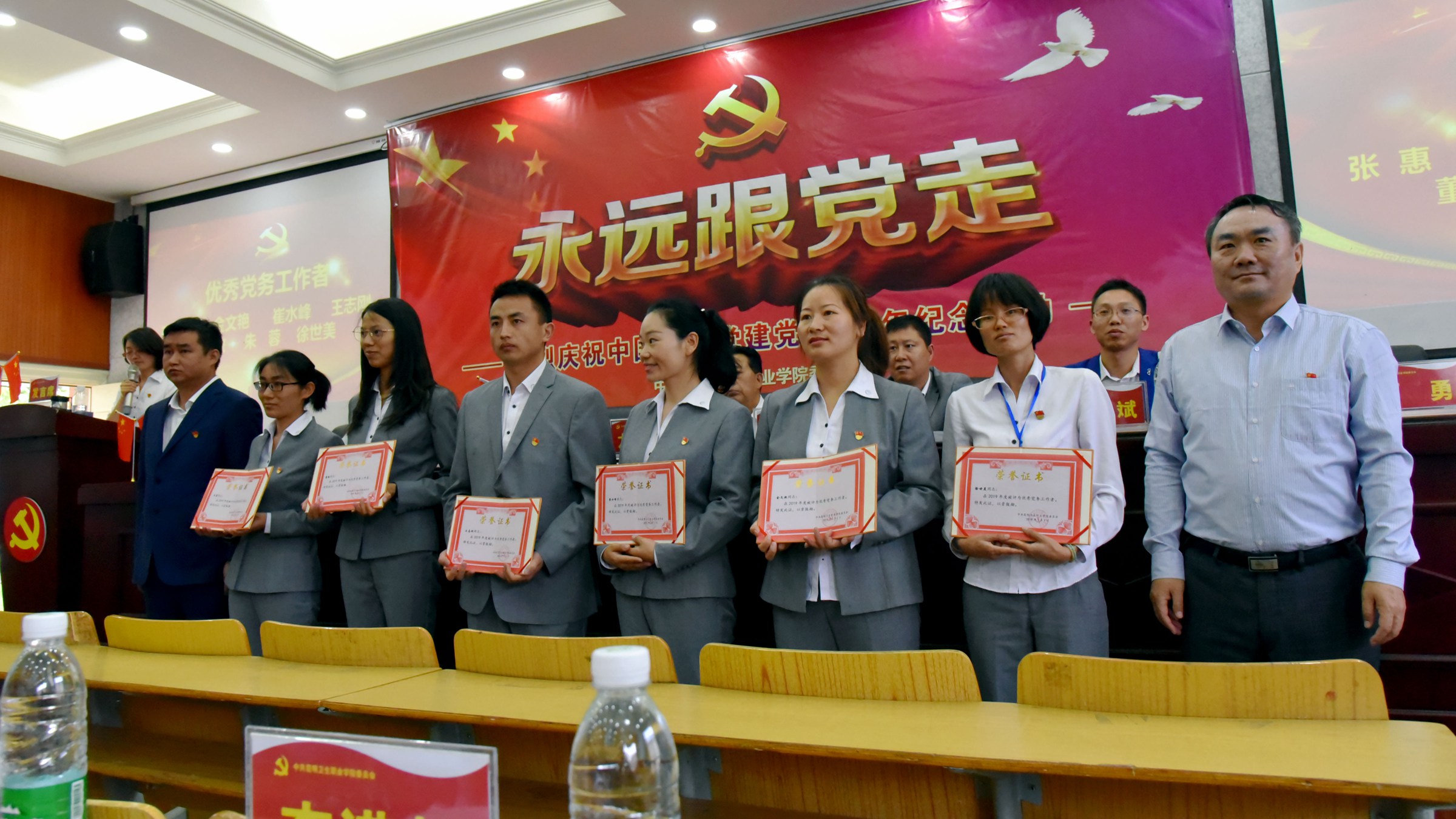 党委委员、副院长周平宣读了党委关于表彰先进集体、优秀个人和各党支部表彰党员先锋岗的表彰决定。2个先进基层党支部、2名优秀党支部书记、7名优秀党务工作者和14名优秀共产党员受到党委表彰,18名党员被支部授予党员先锋岗荣誉称号。主席台就坐领导和各党支部负责人为受表彰的集体和个人颁奖。