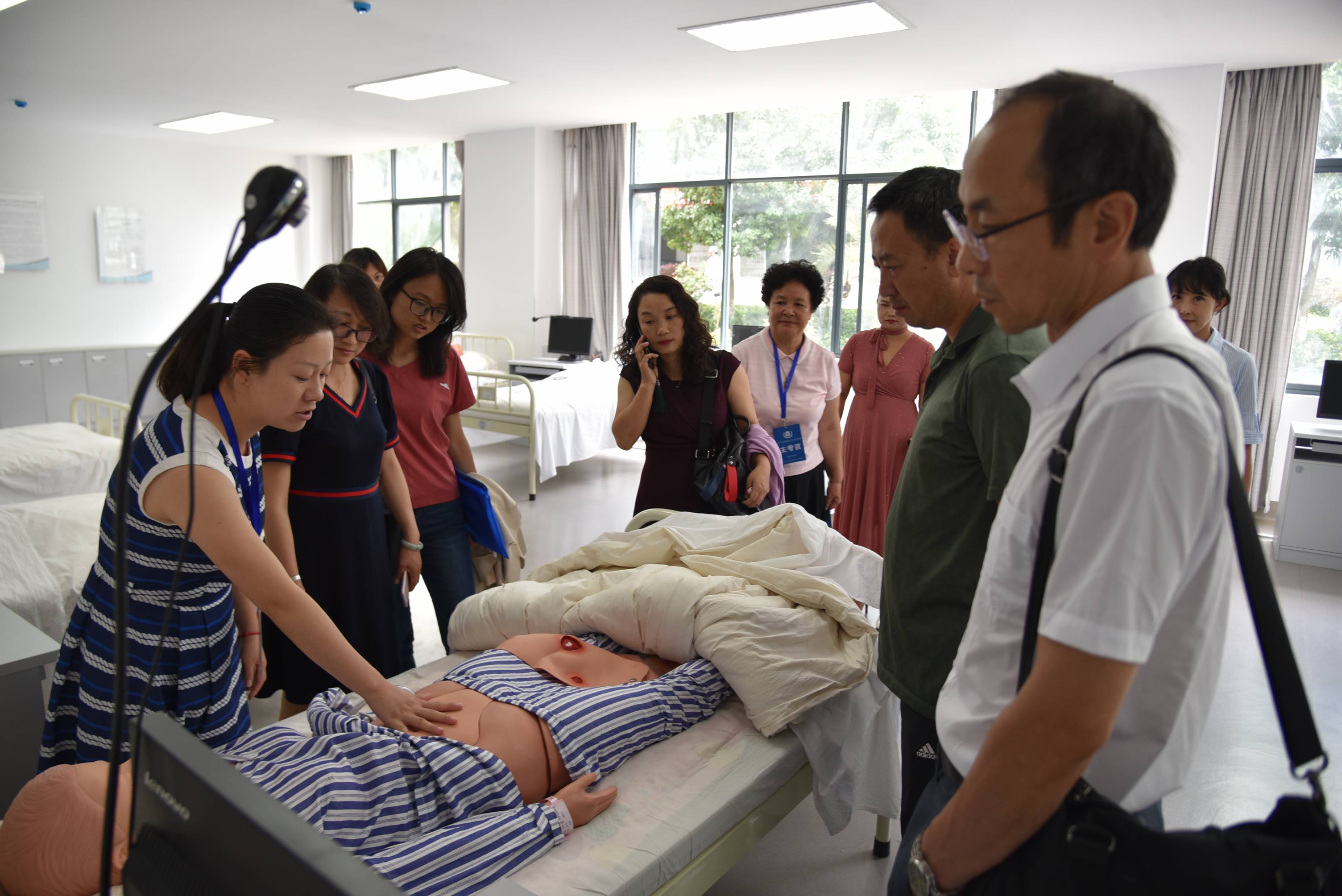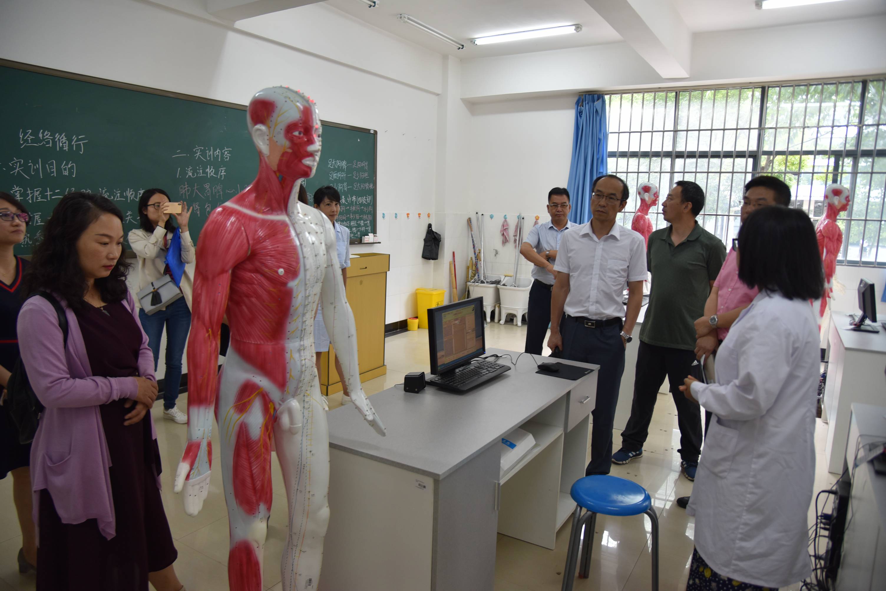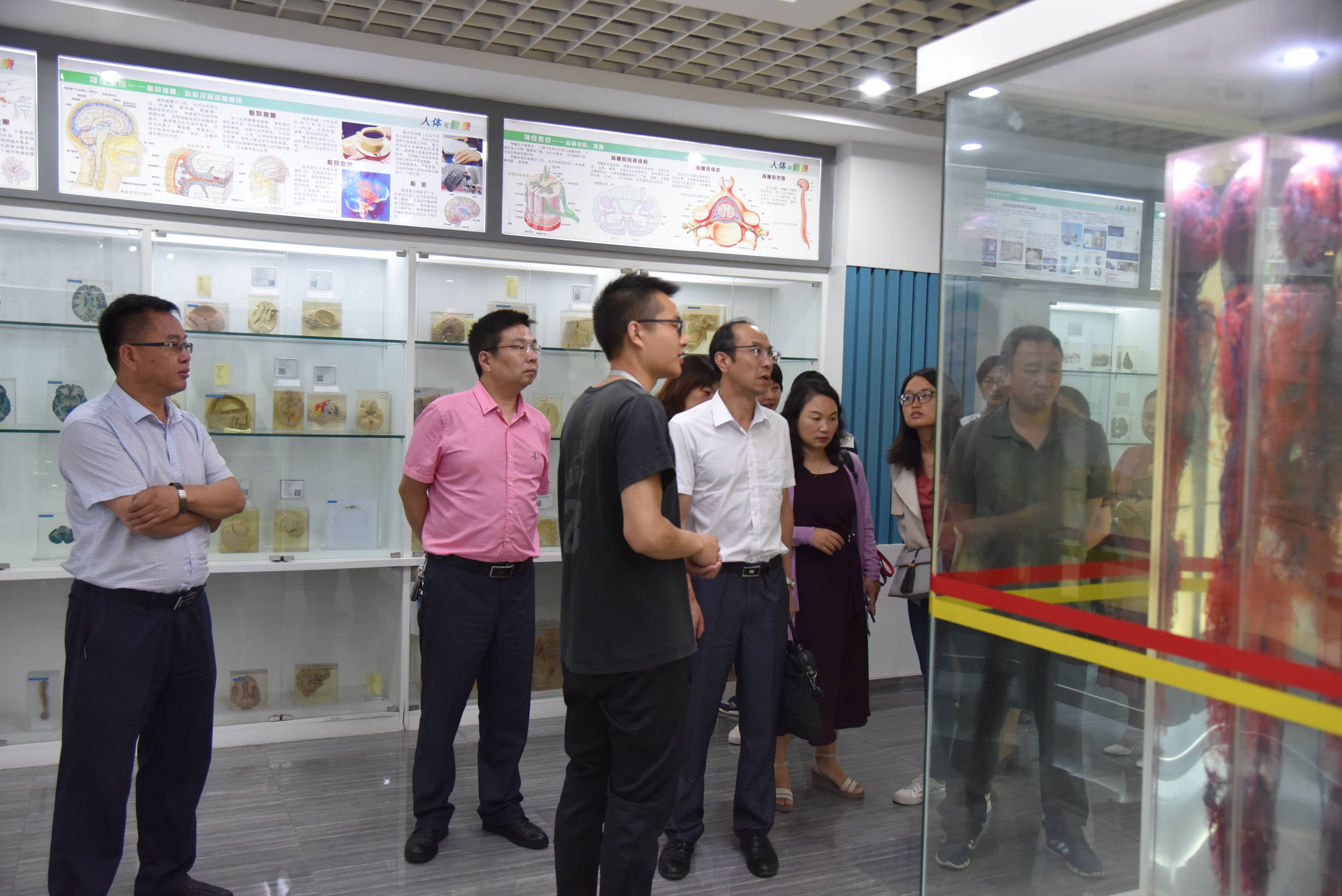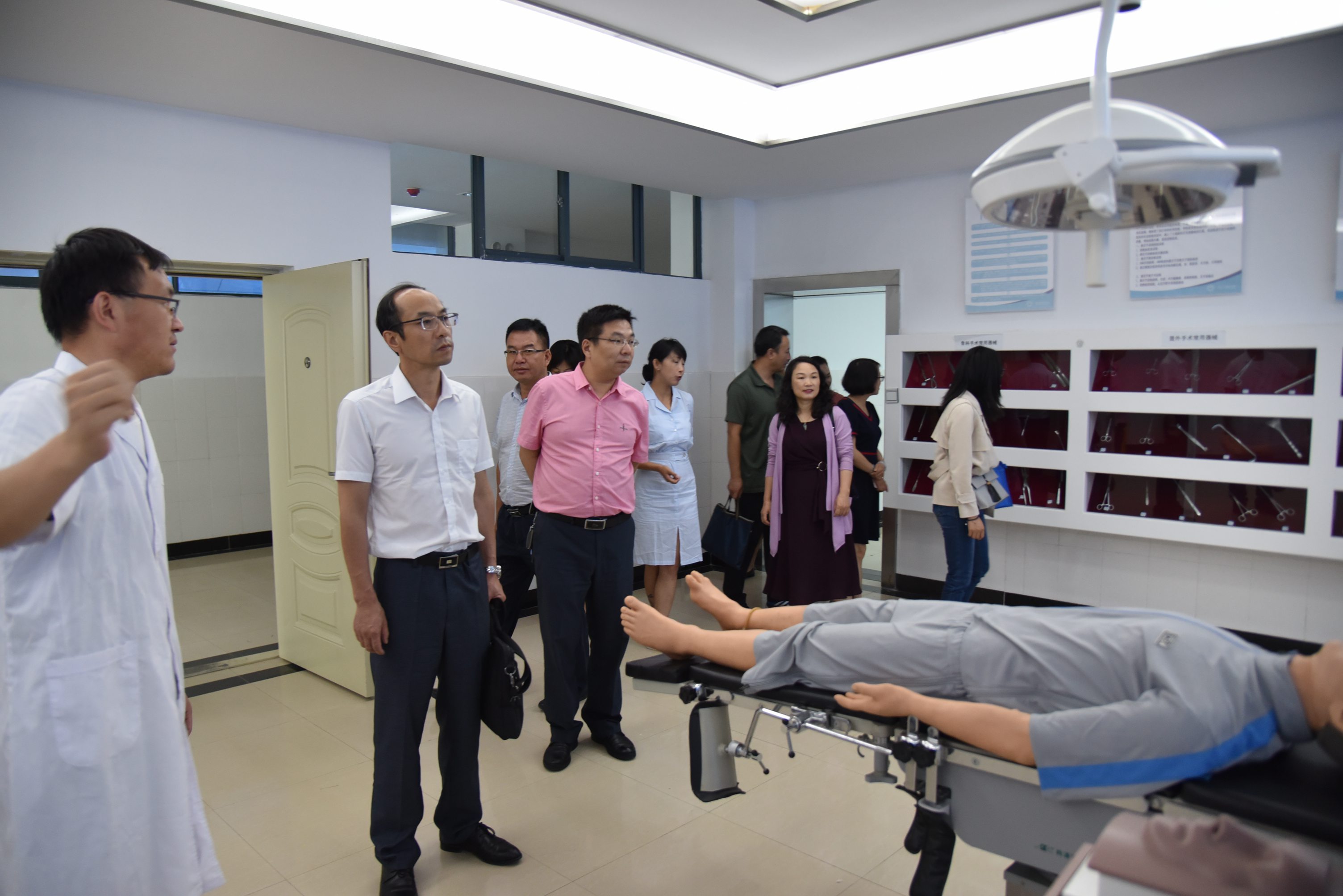 学院副院长龙雨霏、张尤松陪同考察组一行,先后参观了基础医学院生命科学馆,临床学院、中医学院和护理学院教学实训设备,听取了不同学科实验实训场馆建设和教学工作开展情况,并与教务处和各二级学院负责人进行了交流。
