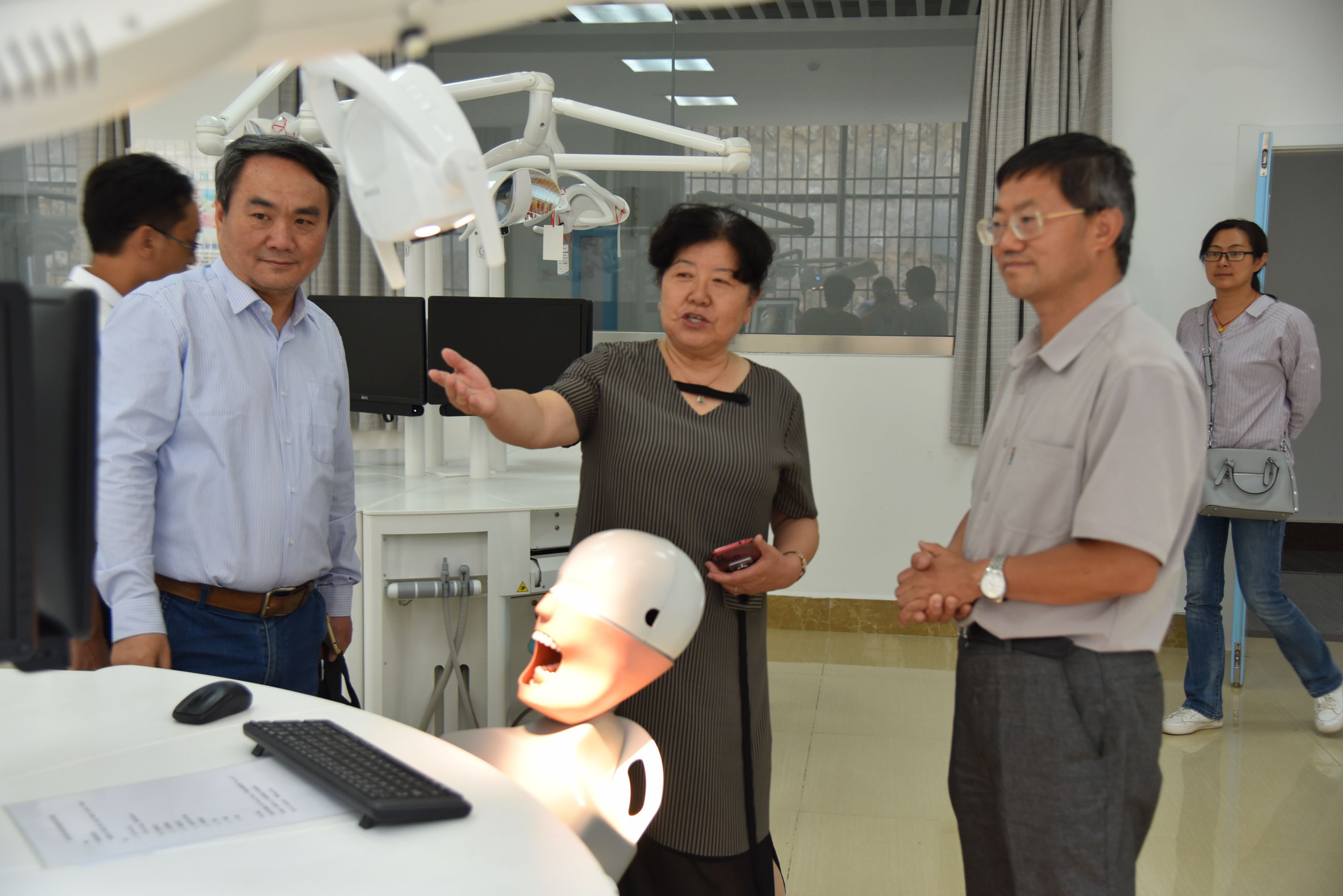 座谈会上,尹海川副处长介绍了此次调研的目的和意义,强调了调研检查的重点方向。贾勇院长全面介绍了beat365平台官方网站的办学历史、发展沿革、运行情况和办学成果情况,就此次调研检查的相关问题进行了解答。朱秀珍副理事长就办学发展中面临的机遇和挑战,高校教育发展等与尹海川副处长进行了深入交流。座谈后,学院领导陪同调研组参观了校园,实地察看了三期工程的建设情况,口腔学院、护理学院实验实训设备配置情况,听取教学情况汇报,并就学生培养和就业方面与两个学院教师进行了交流。