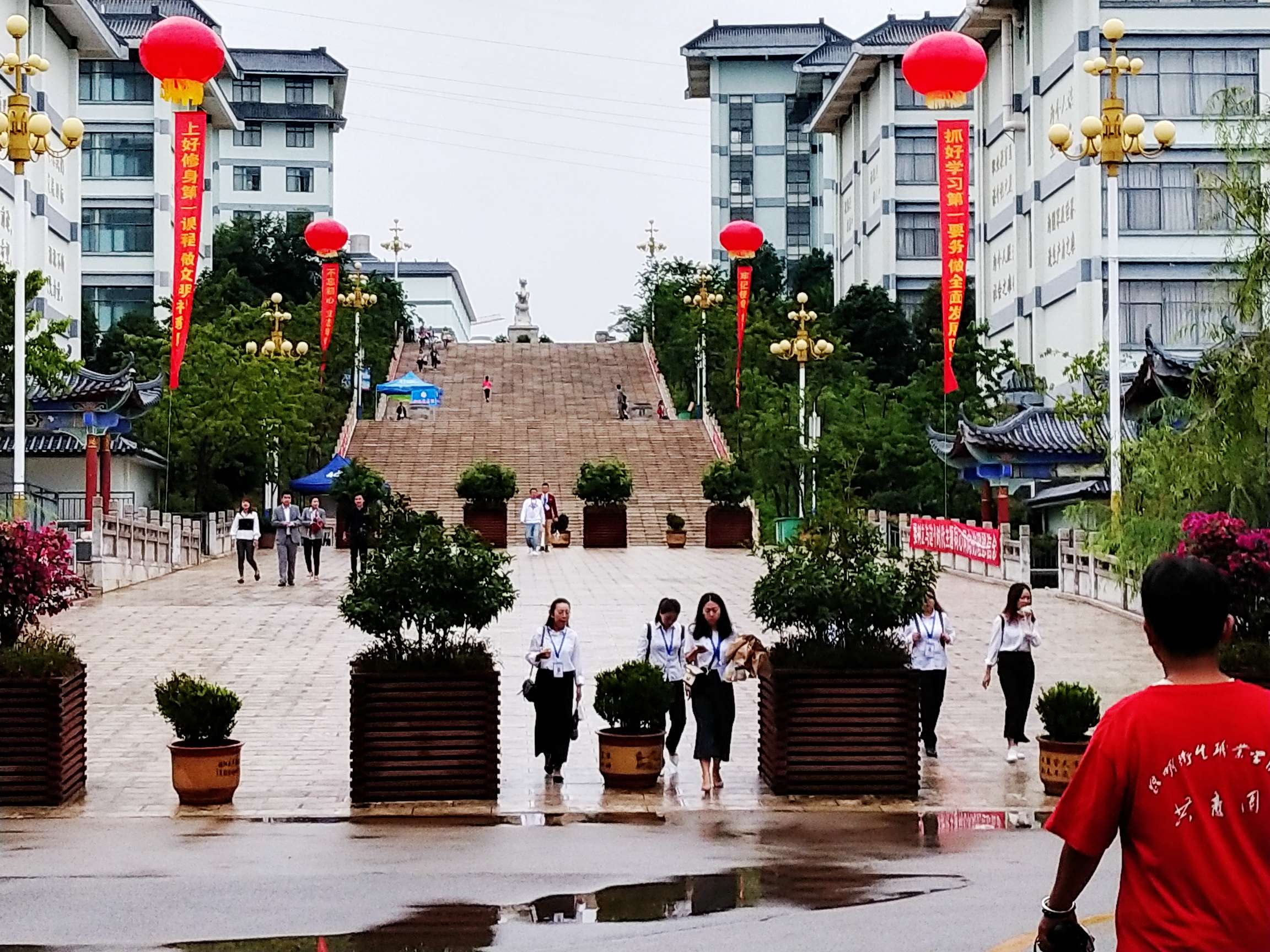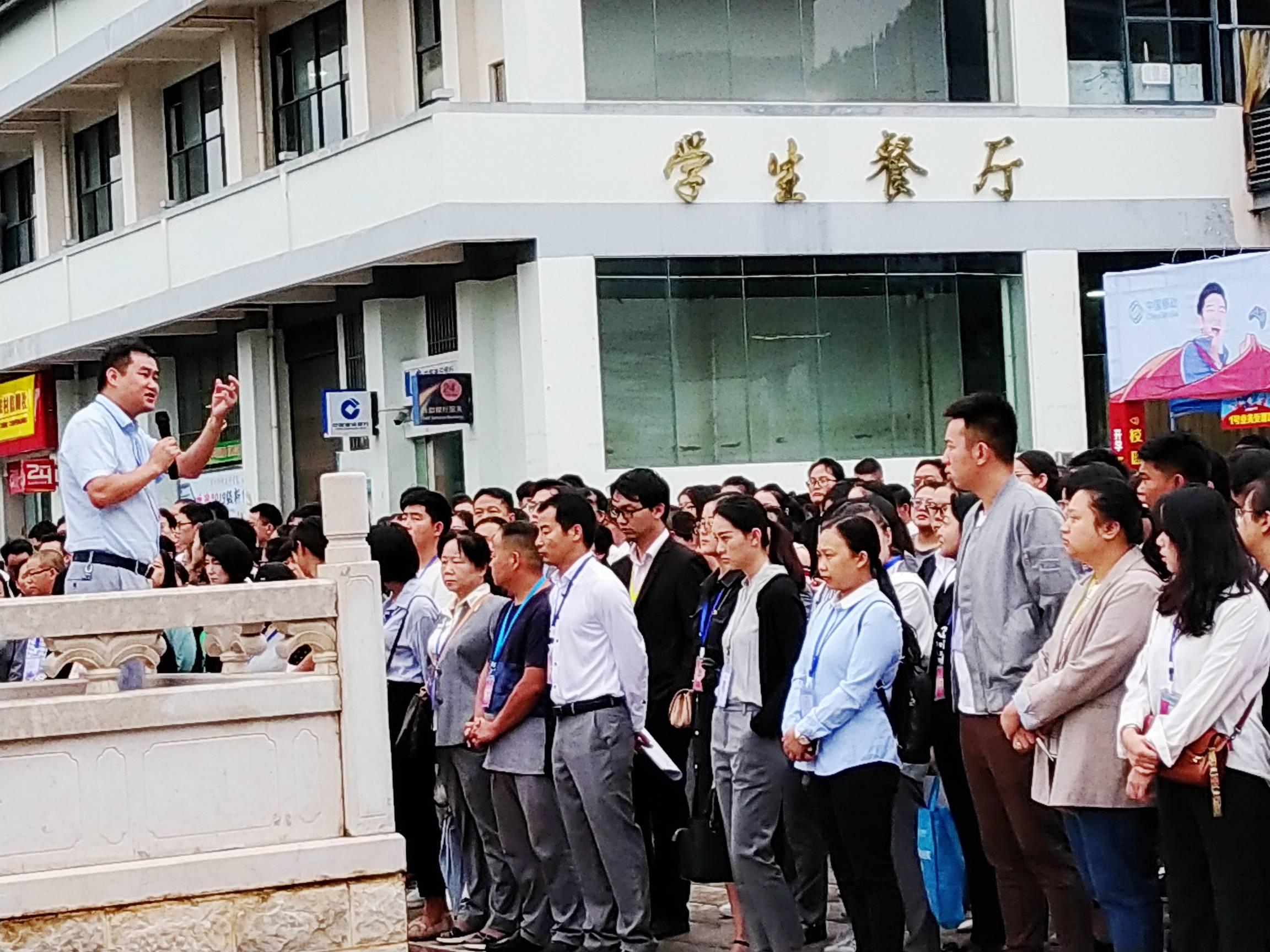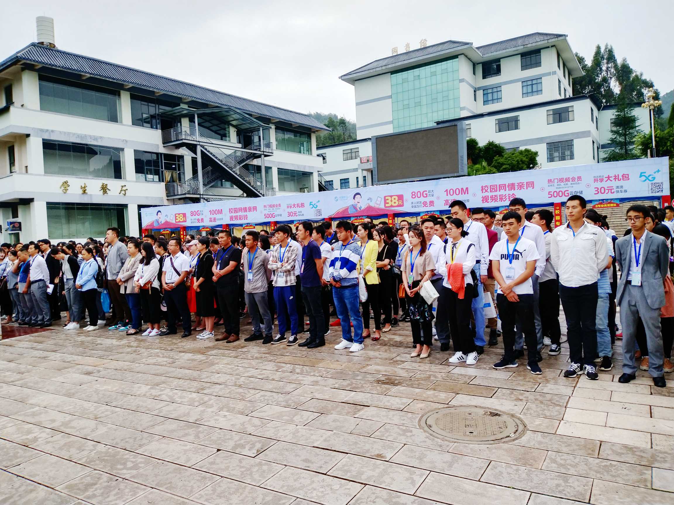 还属夏天的八月中,雨过天青,天色微蒙,全体迎新人员已精神饱满、着装整洁地在图书馆前小广场, 聆听周平副院长对迎新工作的指示。周副院长强调,各迎新组和迎新站点要认真按照学院统一部署,以育人为落脚点做好管理和服务工作,细化迎新工作中的各个环节,强化服务意识,树立良好的学院形象,注重新生入校的体验感受,做好流程和细节的梳理,方便新生报到手续的顺利办理,让学生满意、让家长放心。