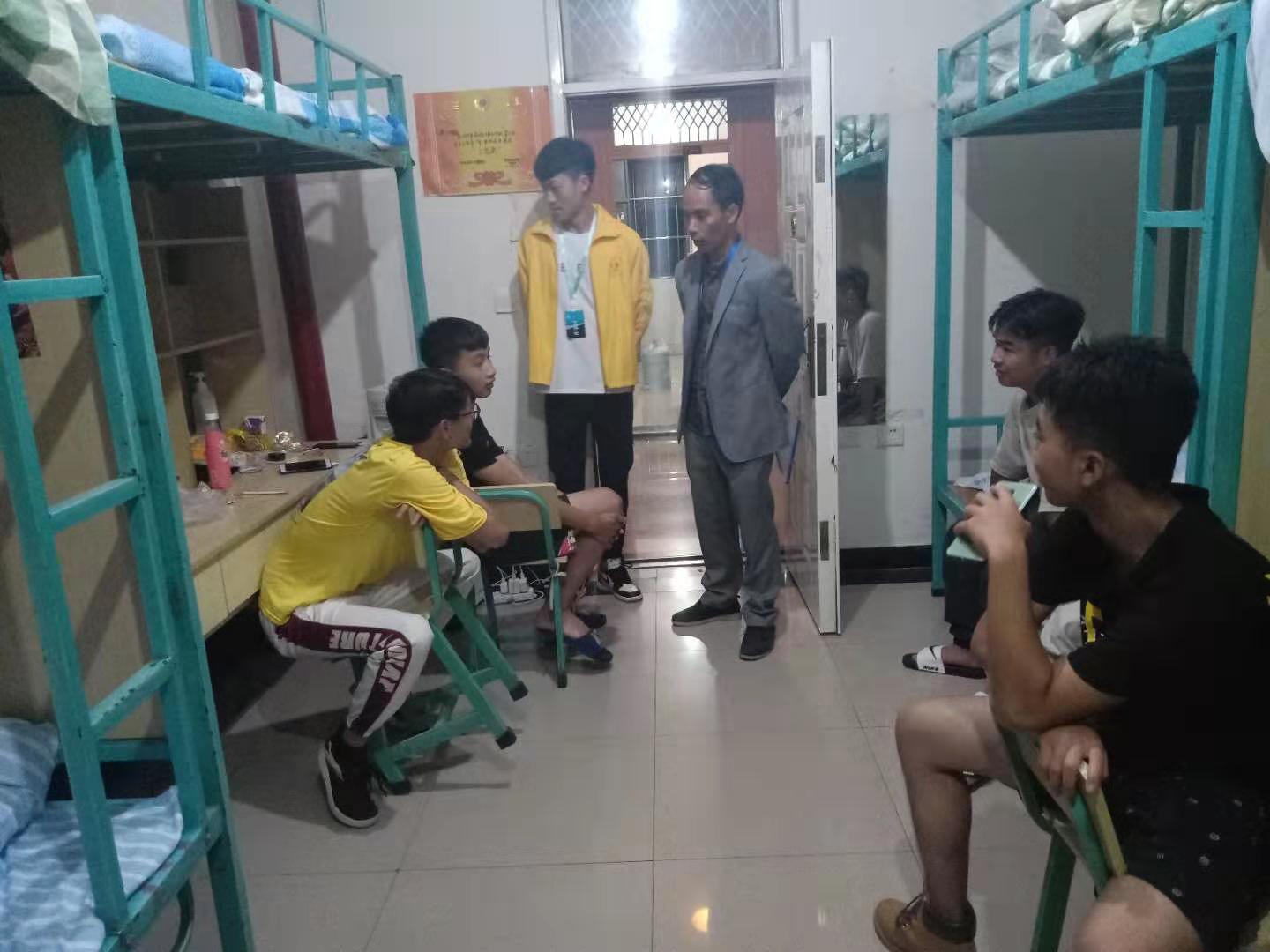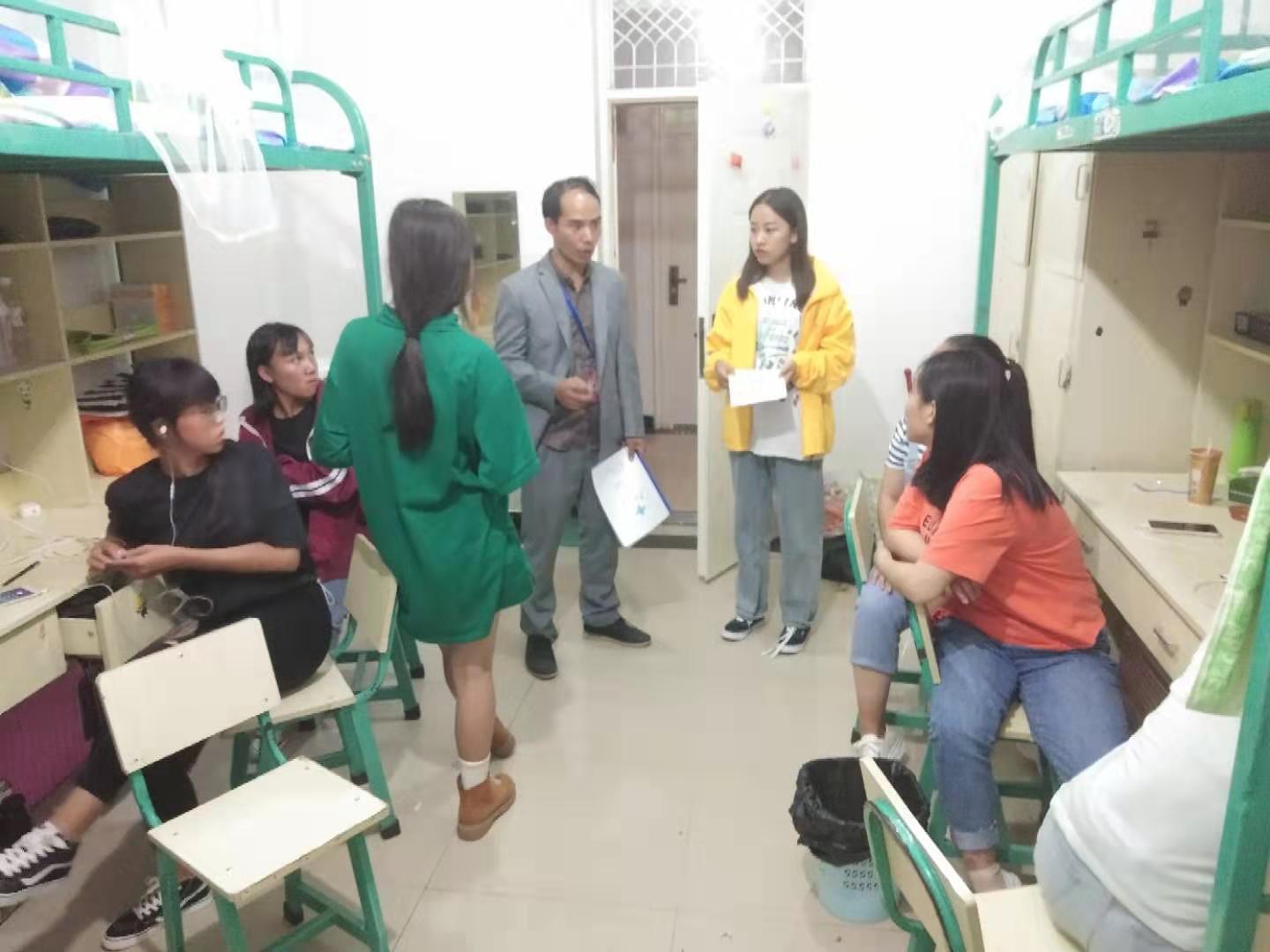 随清风送关怀,借秋日慰新生。8月15日晚,新生入学第一天,beat365平台官方网站大学生工作部心理咨询团队集体出动,由周睿媛、黄伟、郭正梅、李松、谭元元、李孟捷老师率队带领15名学生会及自主管理委员会学生干部,到学生公寓已安排入住的2栋男生宿舍、9栋和11栋女生宿舍, 进行新生宿舍心理走访活动,对新生的生活情况以及新生适应方面存在的问题进行亲切询问和详细记录,对新生存在的问题进行开导并介绍学院及周边的基本情况,鼓励新生相互了解、走出宿舍,多熟悉校园,与舍友多多交流,与老师积极沟通。并鼓励新生努力学习专业知识,提高综合能力。