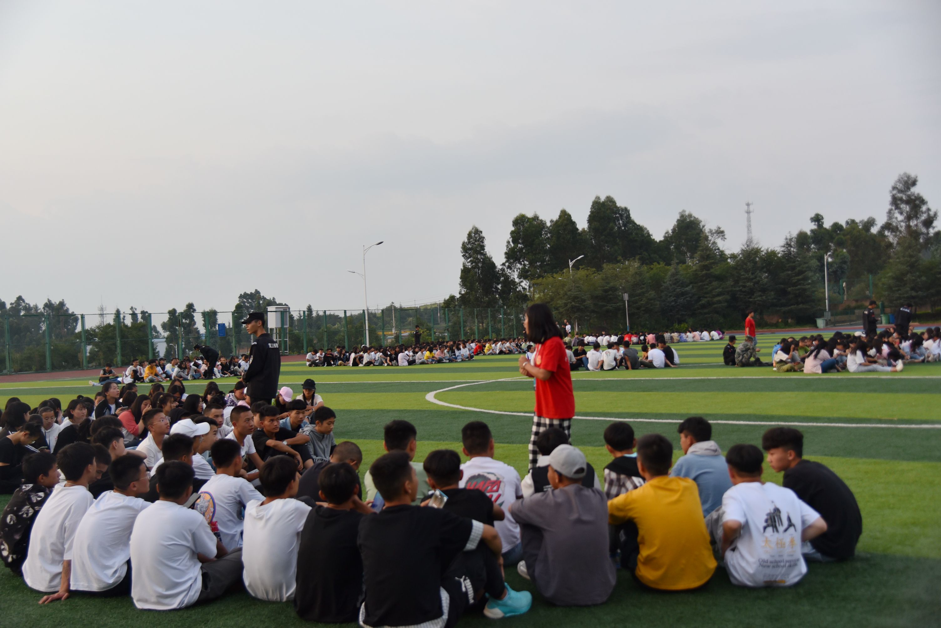 晚上6点半,军歌拉练比赛在足球场举行。嘹亮的军歌是昆卫学子对崭新的大学生活积极的态度。响彻天空的歌声激荡心房,突显出新一代年轻人的力量。此次军歌拉练活动不仅丰富了新生军训的内容,更好地培养同学们的集体荣誉感,在简单的活动中快速拉近师生之间、同学之间的距离,在新一届学生中创造团结友爱、积极向上的氛围。
